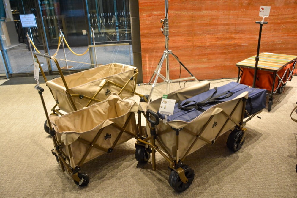 会場に入ってまず出迎えてくれたのはキャリーワゴンたち。既存のモデルですが、イマドキっぽい新色のベージュカラーになっています。