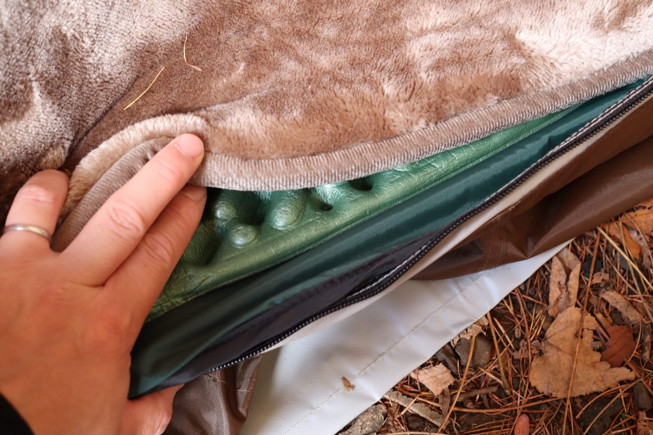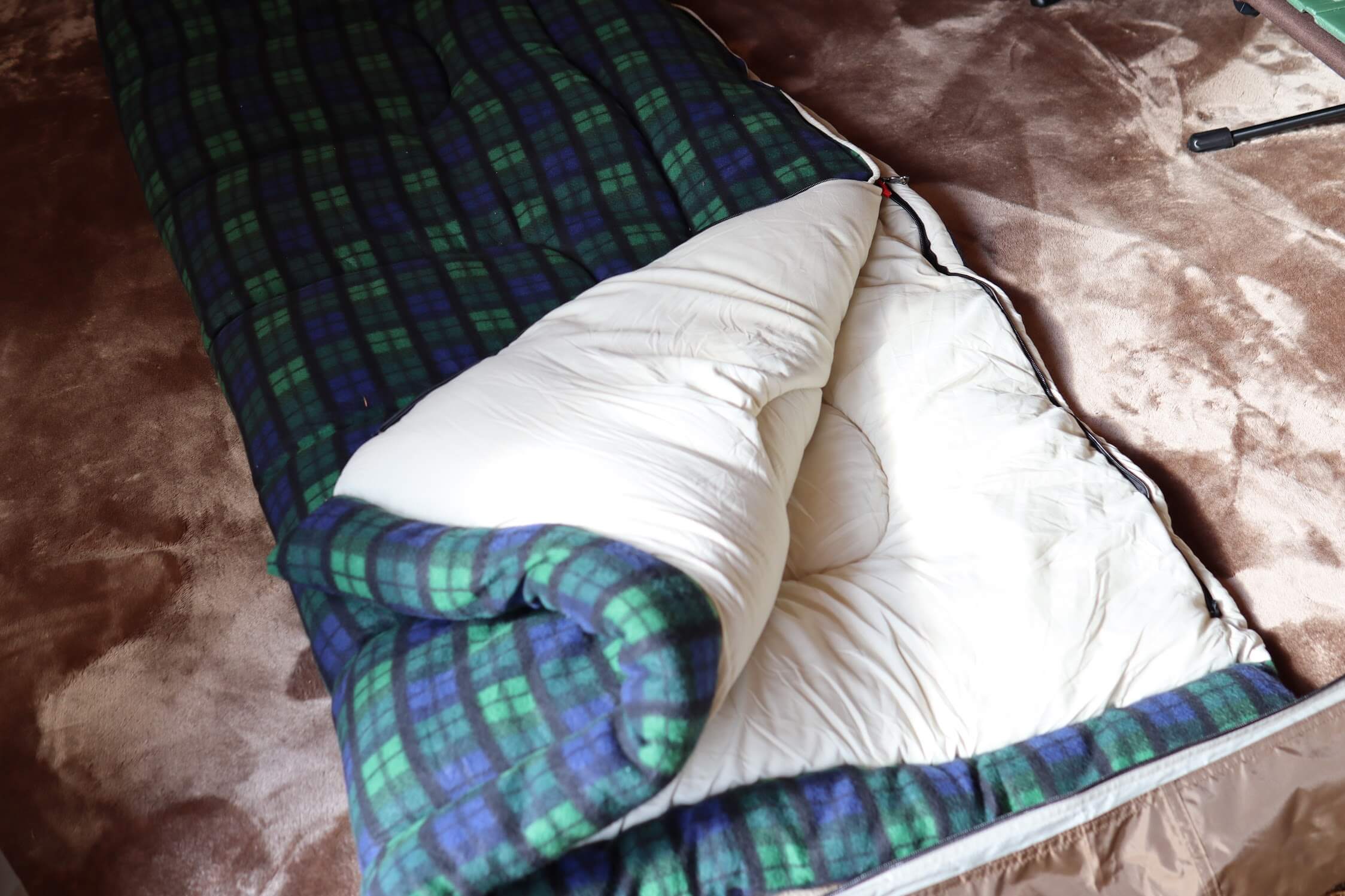 そのため、底冷え対策は入念に実施しました。断熱効果のあるマットやクッションをレイヤーリング(重ねる)ことで地面からの強烈な冷気を遮断します。