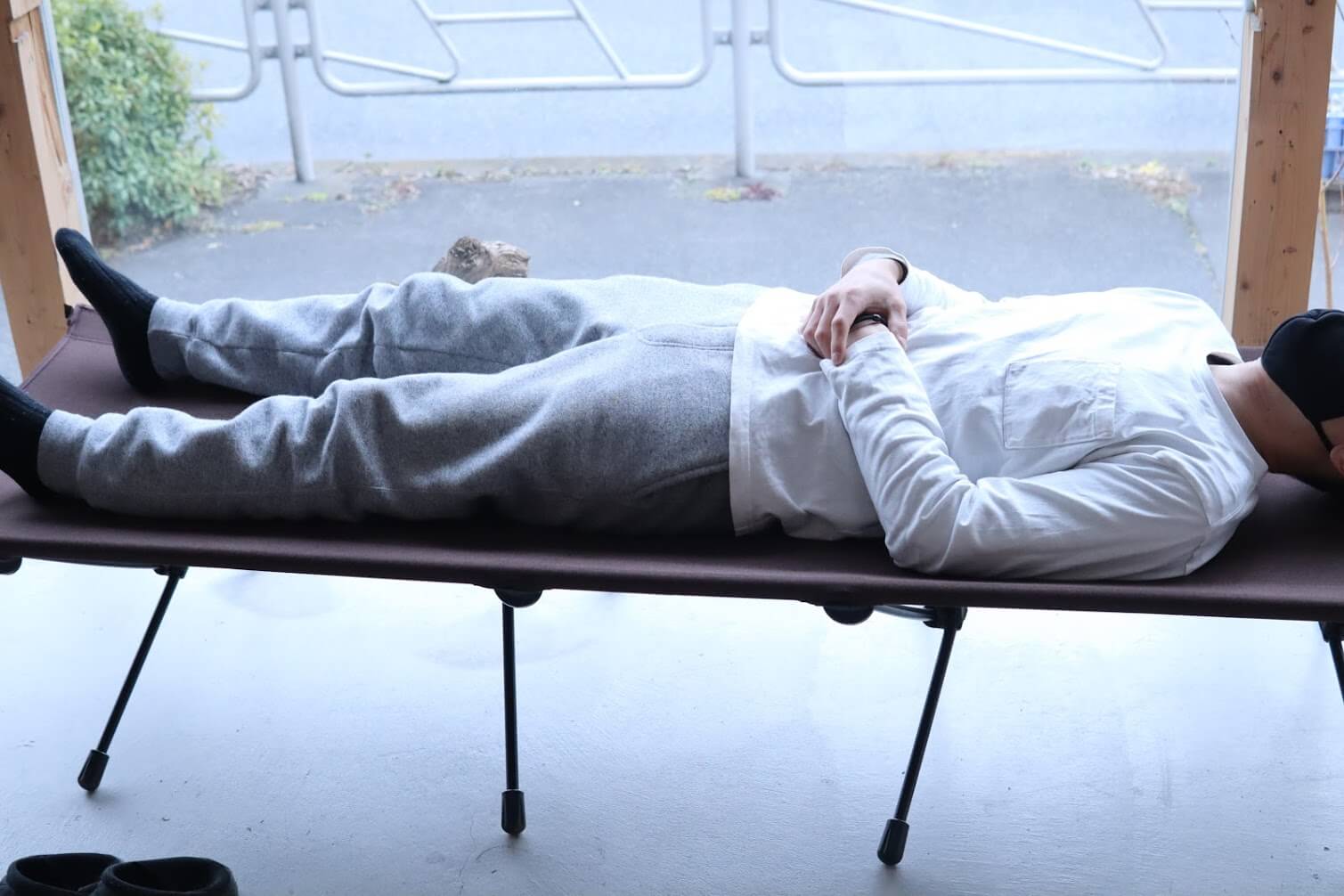 本来の用途である簡易的なベッドとしての利用です。標準の短い脚でローコット仕様。