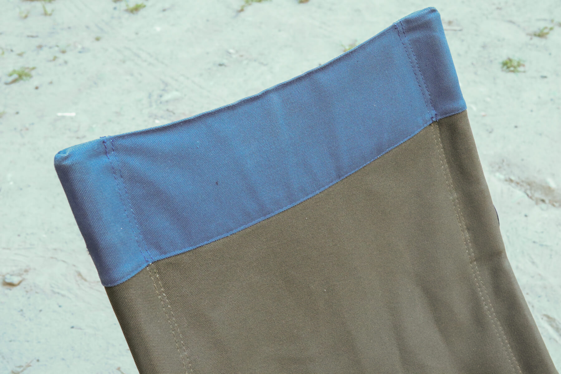 座面はコットン100%。柔らかすぎず、適度にパリッとした厚手の生地です。座ると適度に体圧を分散して優しく包み込んでくれます。コットンなので火の粉にも強く、焚き火周りでの使用も安心感があります。