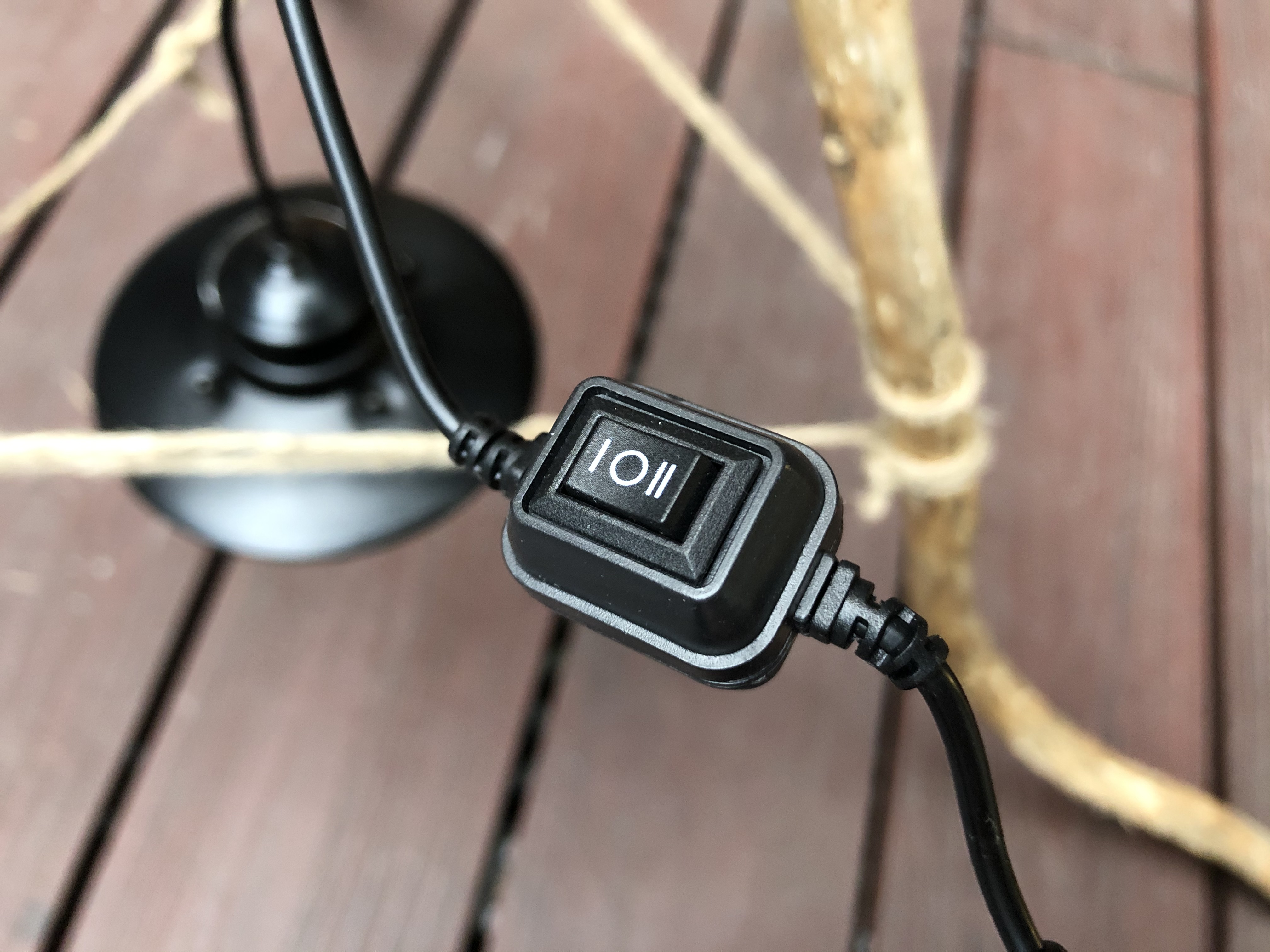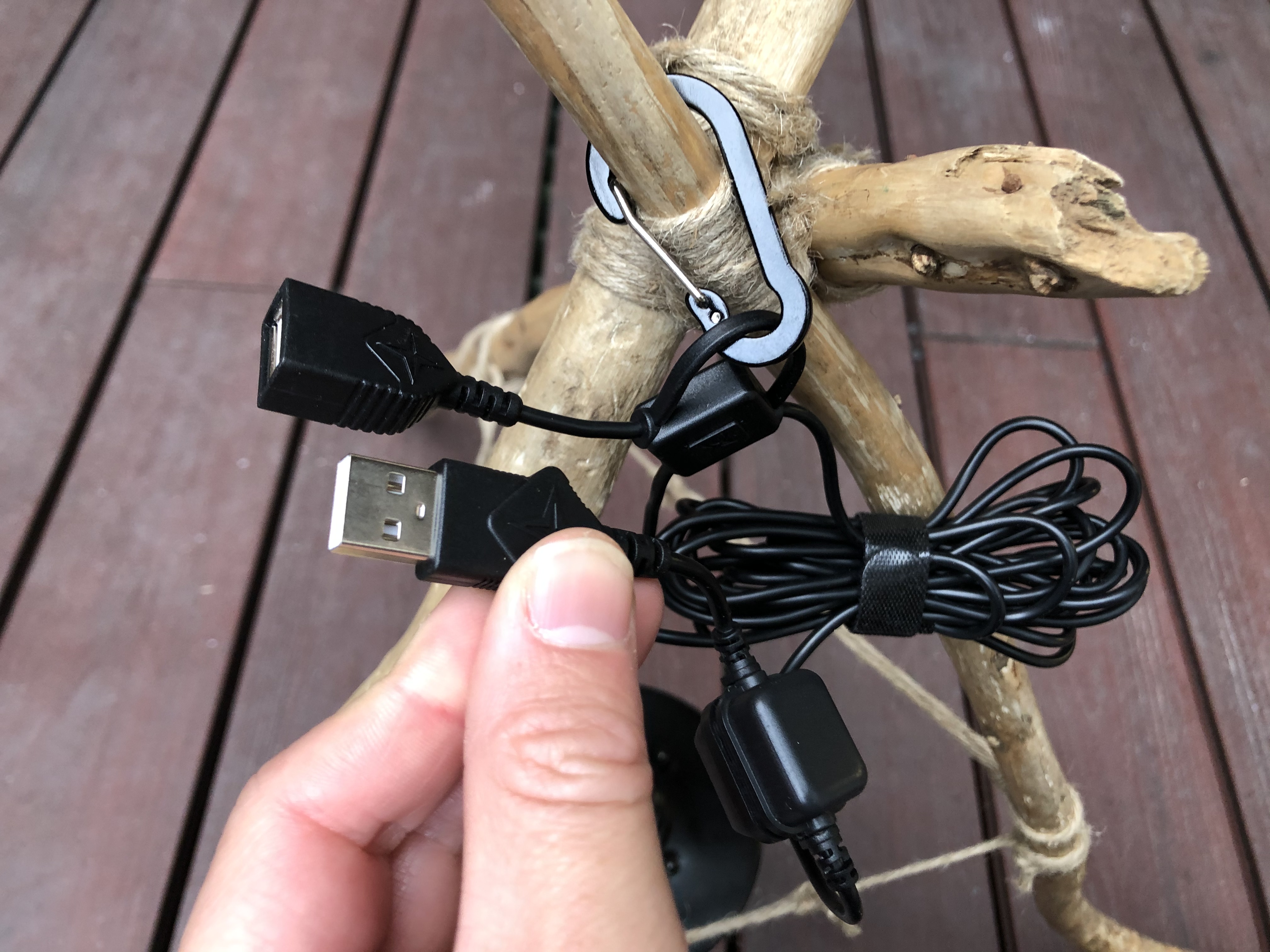 もっともバッテリーに近い側についていますので、ライト本体だけ長いUSBケーブルで上部の方に設置し、電源は手元でON・OFFを切り替えるという使い方が出来ますね。