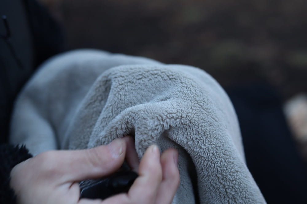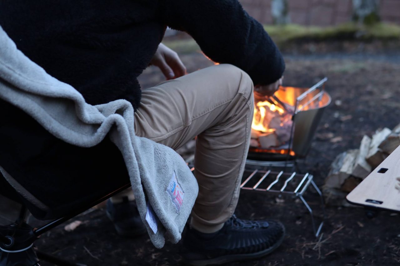火の粉で穴が開きやすいというデメリットがありますが、最近では表面が難燃生地、裏面が保温力に優れたフリース素材になっている焚き火に適したフリースブランケットも登場しています。