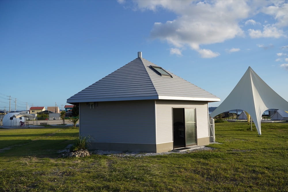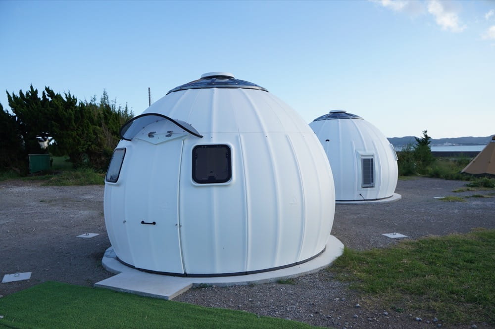 こちらは「EZDOME」と呼ばれる珍しいプレハブ工法ハウスで、もちろんこちらに宿泊することも出来ます。エアコン完備で快適な空間です。