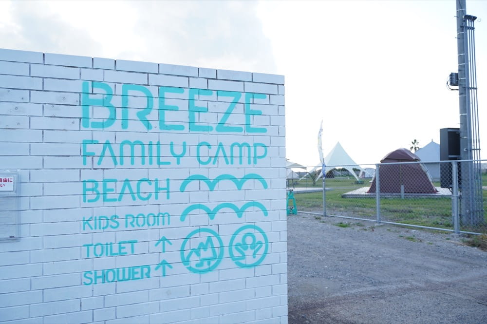 国道を走っていると「BREEZE Family Camp」の文字が書かれた白い壁があるので、とても分かりやすいですね。