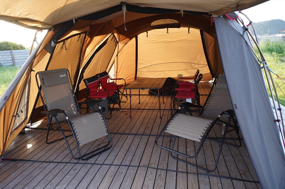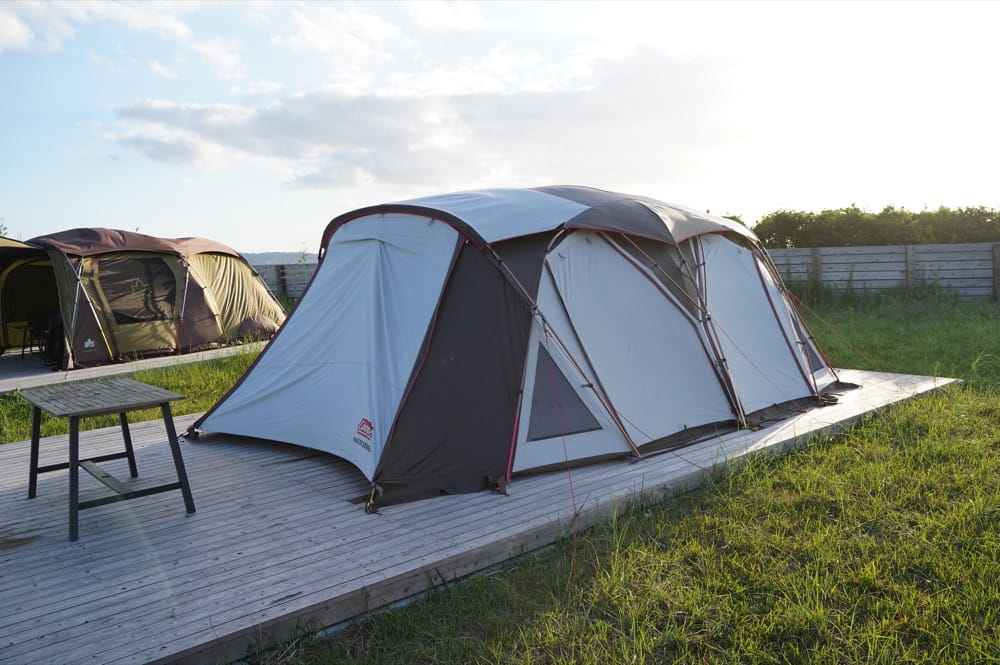 実はこれ「テントのショールーム」も兼ねており、大型テントを購入前に実物を見てみたい!というキャンパーさんも多く訪れるそうです。
