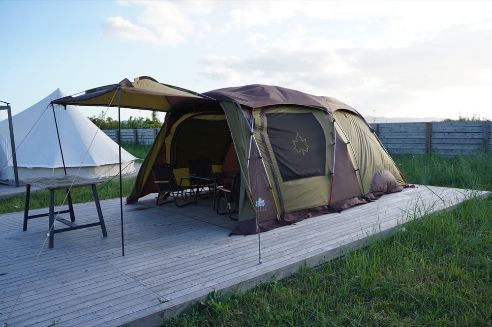 この日はLOGOS PREMIUM、Coleman マスターシリーズ、BellTentUK、デカトロン AirSecondsなどが張ってありました。予約の際にお好きなテント・設備を選ぶことが出来ます。