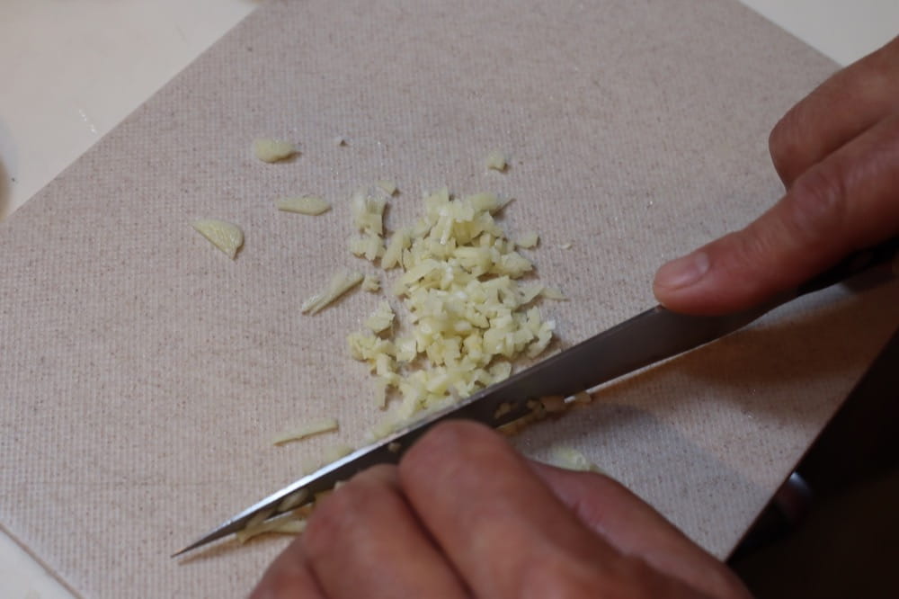 - ニンニクは1人前=一欠片。つい沢山入れてしまうが、入れすぎない。