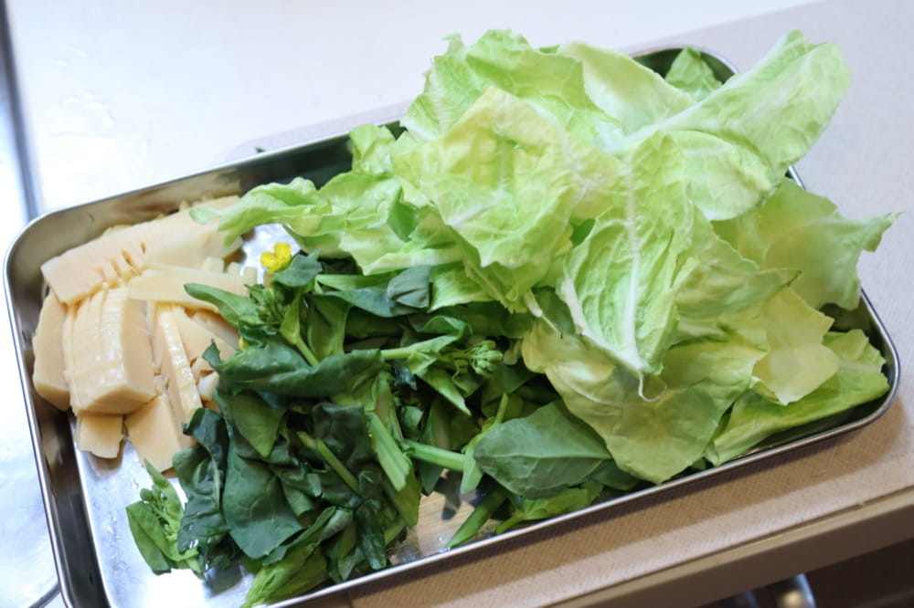 - 旬の食材(今回はたけのこ、菜の花)を入れると美味しさUP