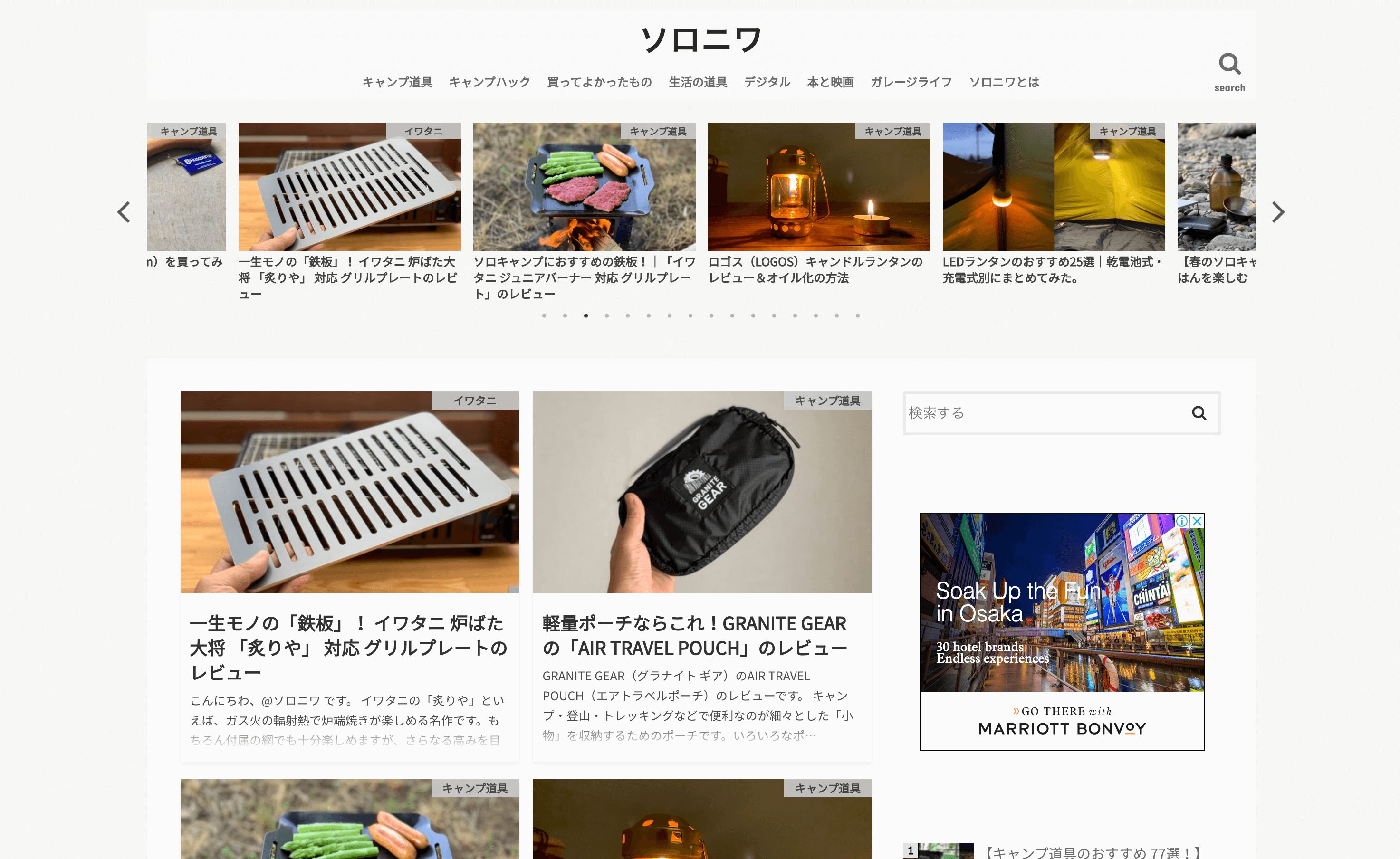 実際に使って、なおかつ心からおすすめするギアだけを厳選して77選!というパワフルなコンテンツが、ソロニワさんが「凄腕のモノレビュワー」であることが伝わってきますよね。