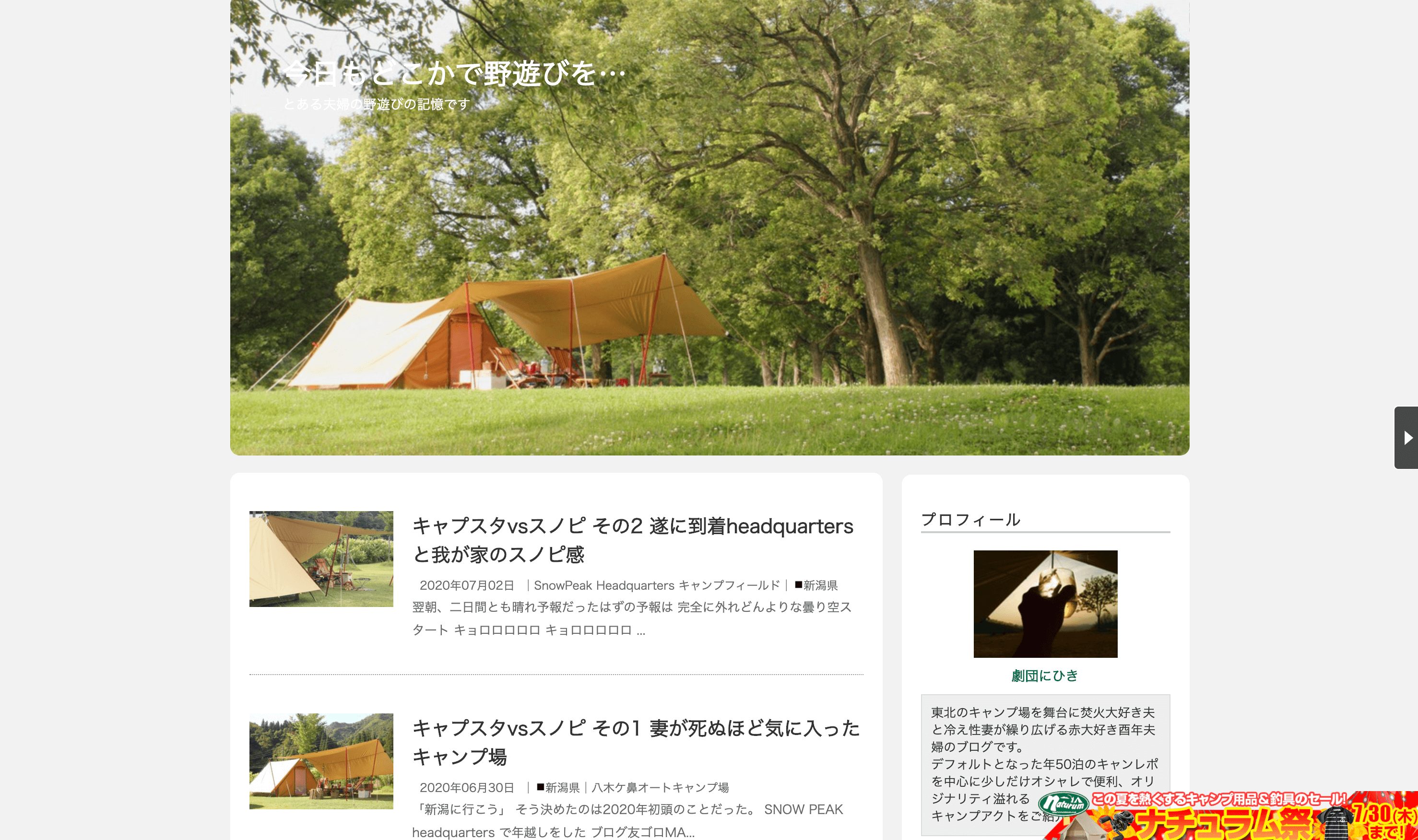 主に東北地方のキャンプ場訪問レポートをメインコンテンツとする今日もどこかで野遊びを…さん。独特の詩的な文体が癖になるブログです。いい意味でGoogleの方を向いていない、書きたいようにやる記事スタイルが潔いですね。(アフィリエイトも控えめ)