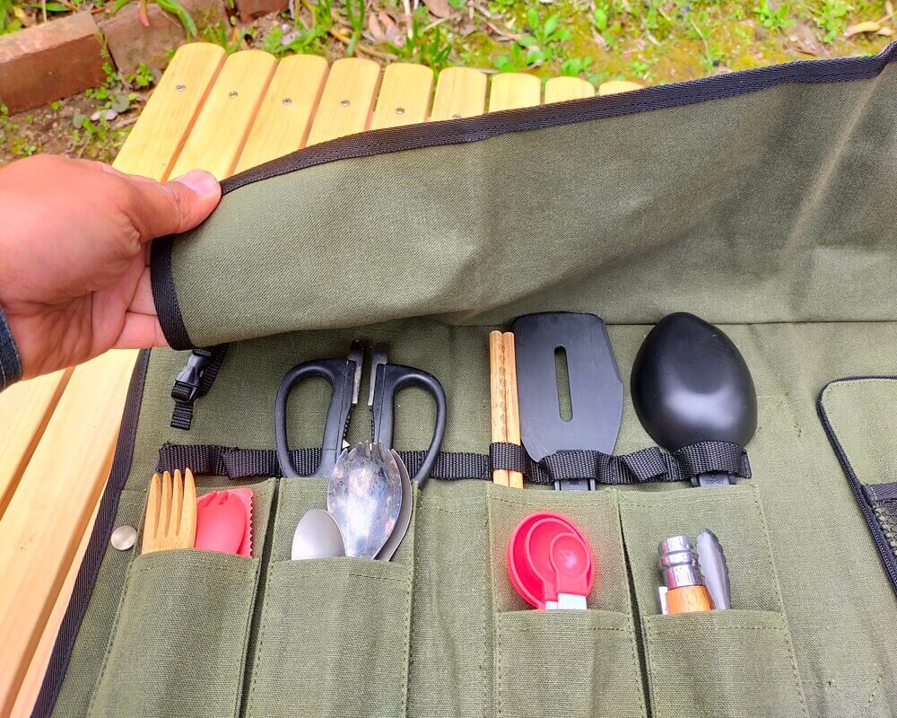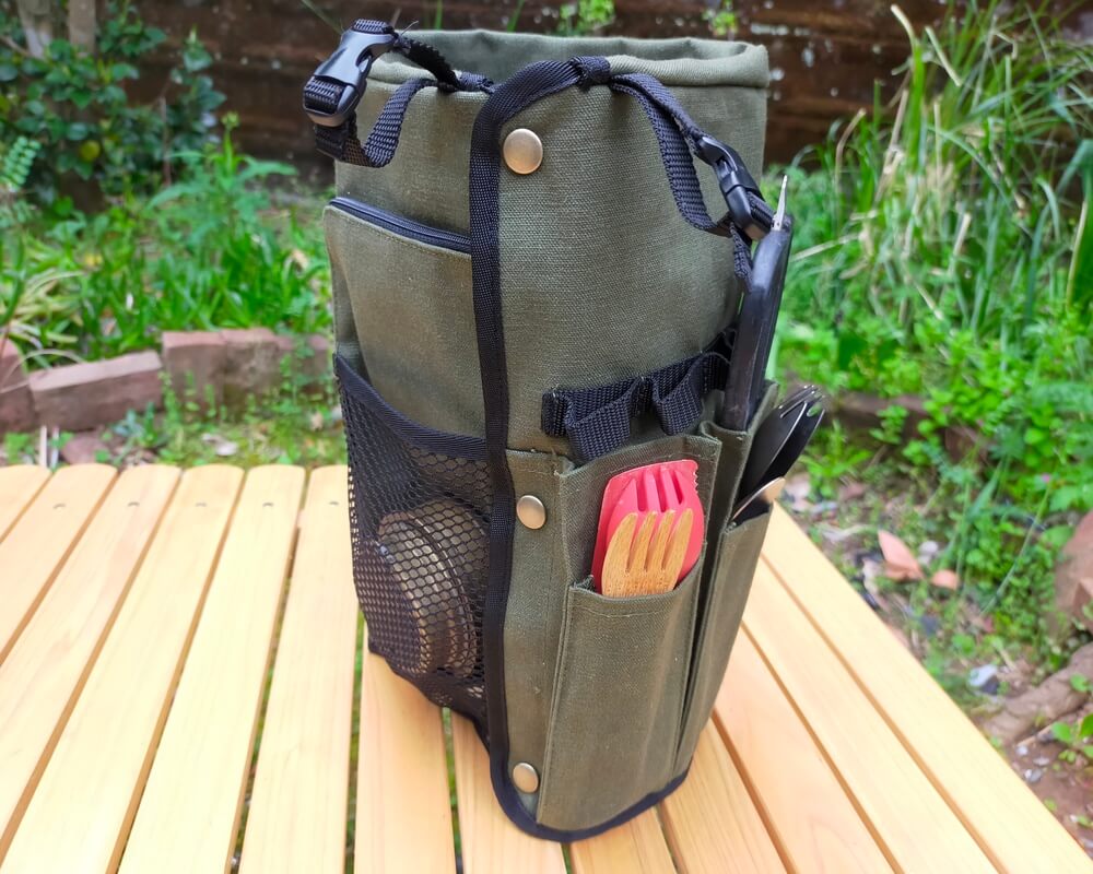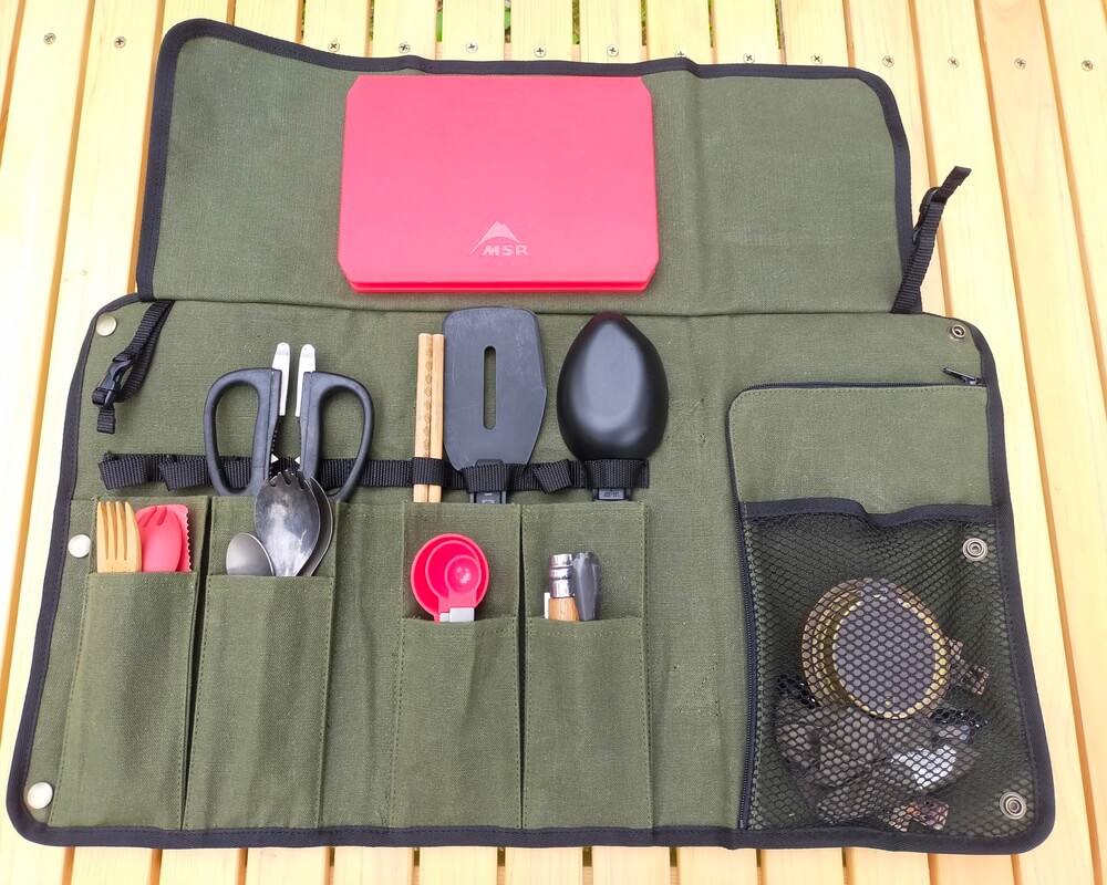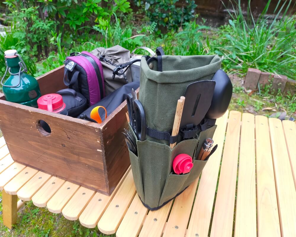 調理用や焚き火用など、用途がはっきりとしており、頻繁に出し入れをする小物をまとめて収納するのには、ポケットがたくさんあるバッグをおすすめします。