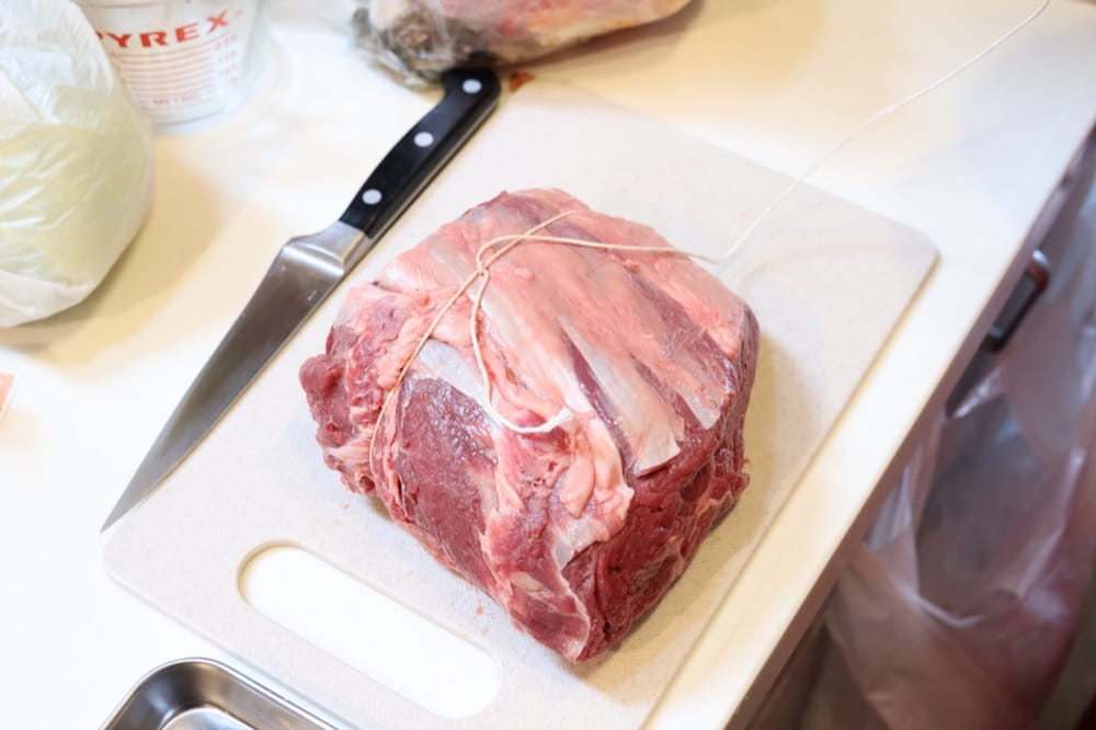 まずはローストビーフに使うお肉の選び方です。ランプ、モモ、ロース、サーロインなどが適しています。冷たくして食べるなら赤身の多いランプやモモ。