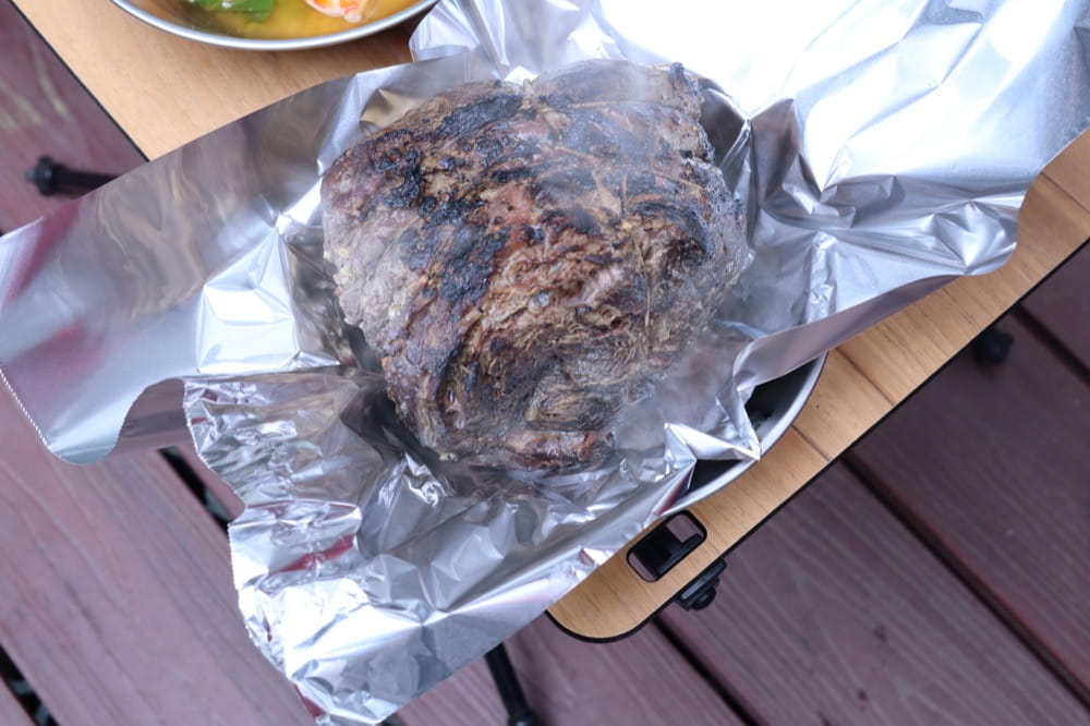 ④肉を取り出してアルミホイルに包み、落ち着かせる