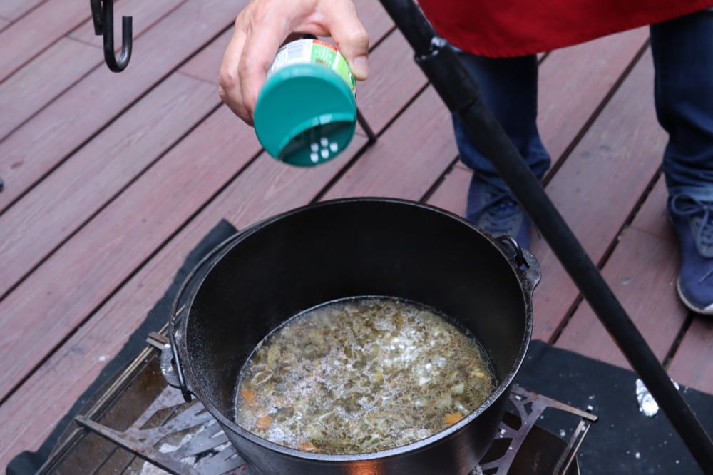 ダッチオーブンは超定番のロッジ キャンプオーブン10インチ(ディープ)です。