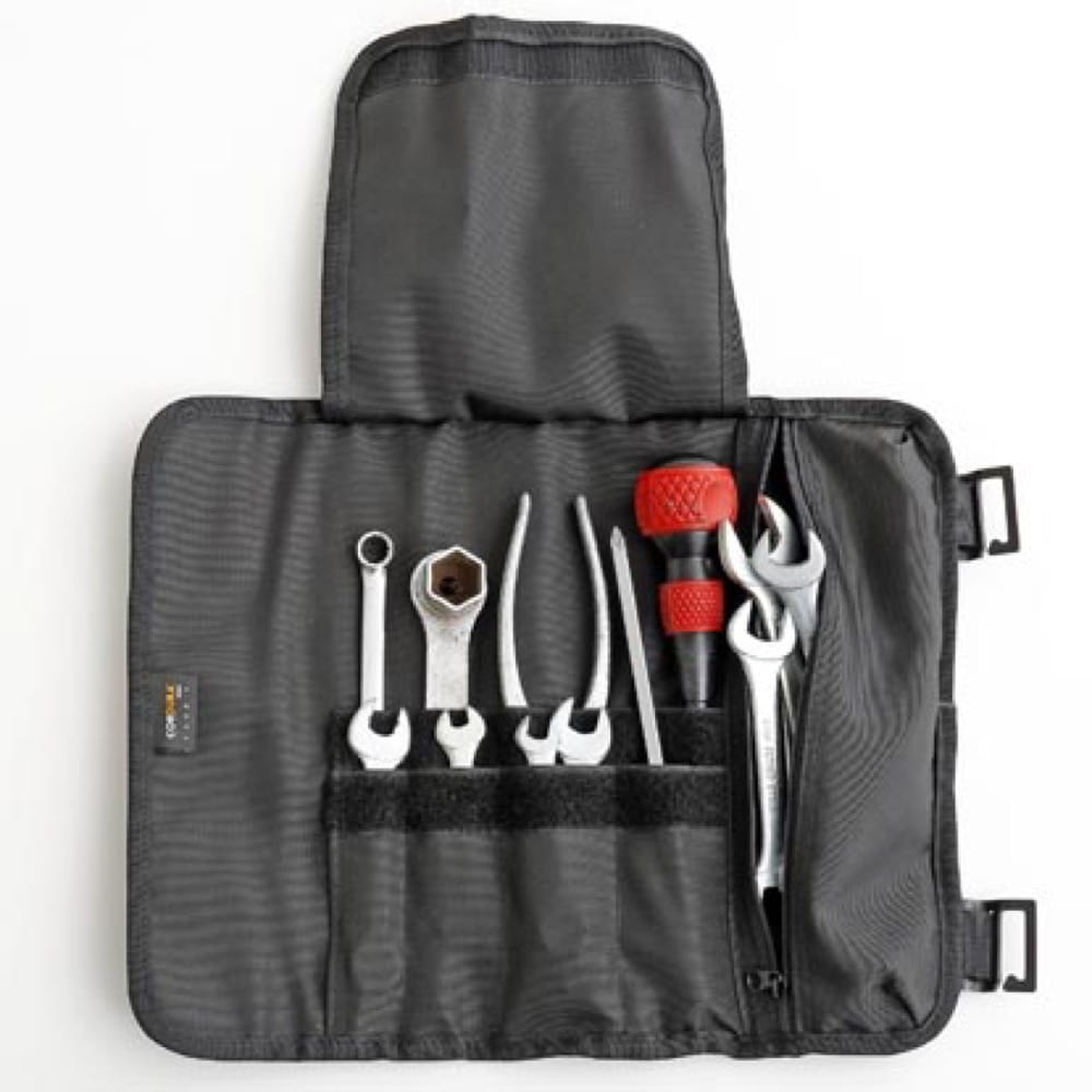 ツールケース(ツールロール)は、文字通りツール類を収納した布地を、くるくると丸めることでギアなどを収納するバッグのことを言います。