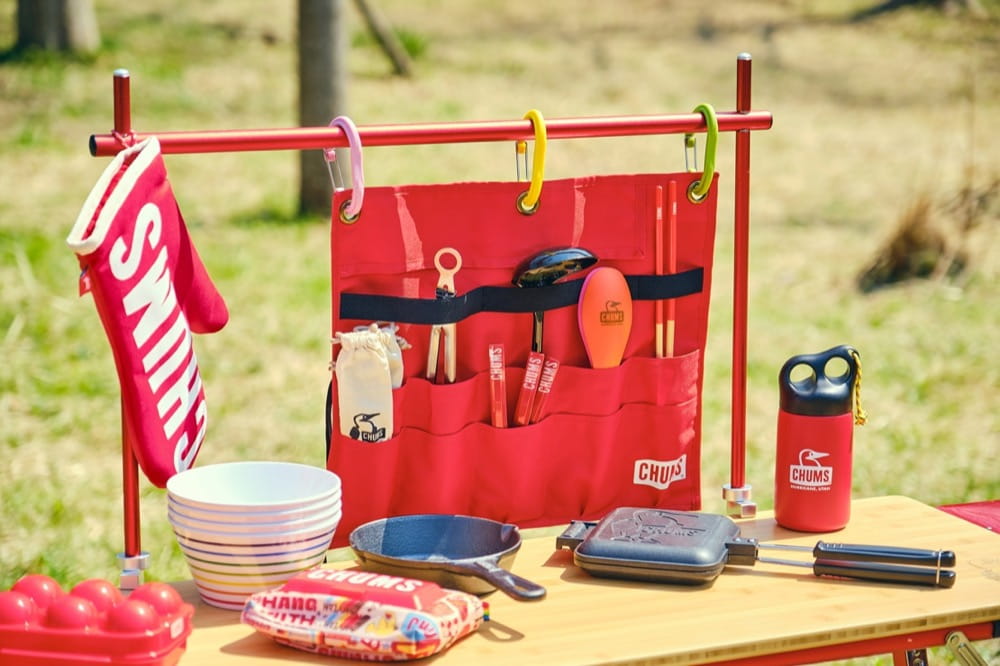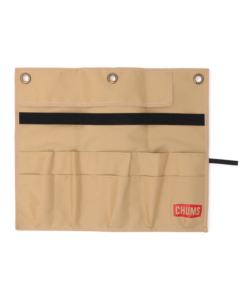 チャムスからリリースされているロゴキッチンツールロール。「ウォールポケット」という呼び方で、上部にハトメが付いているのでいろんな場所に吊り下げることができます。