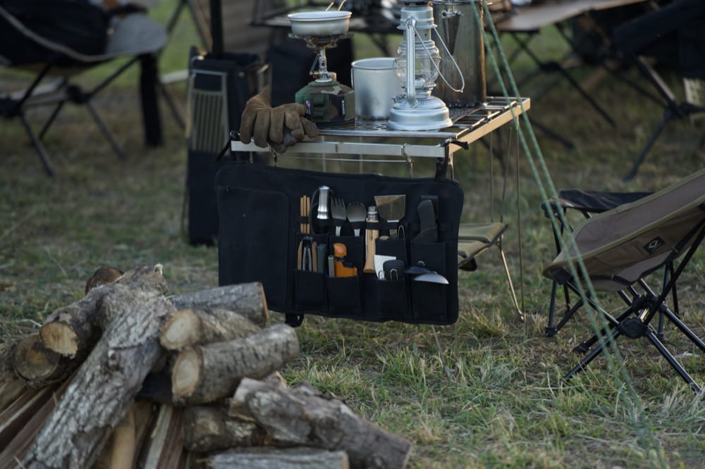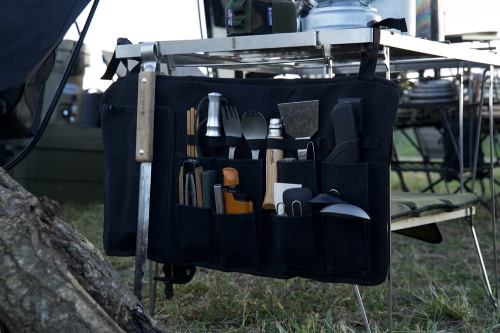 キャンパーだったら、カトラリーや焚き火系のギア、LEDライトなどを収納するのに適した形式です。