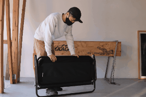適度にしなるアルミニウム素材の脚と、パンっ!とした張りのあるポリエステル製の貼り材によって、非常に安定感の高い座り心地です。