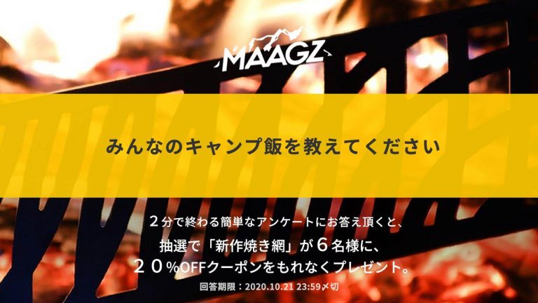 MAAGZ 新製品「焼き網」販売直前プレゼント企画!! いろいろな焚火台で使える「焼き網」を2020年10月23日(金)にリリースします。 その記念として、急遽…