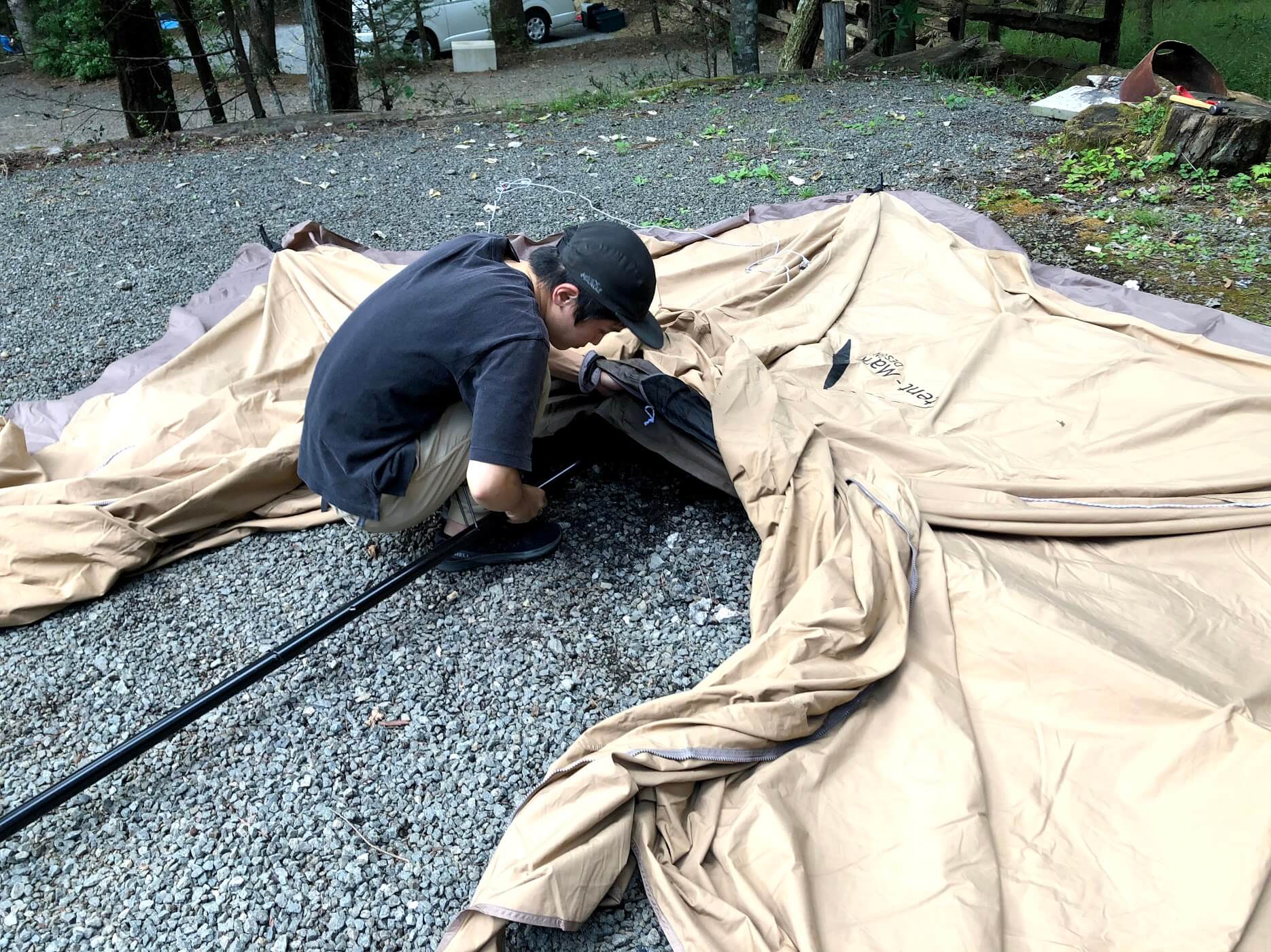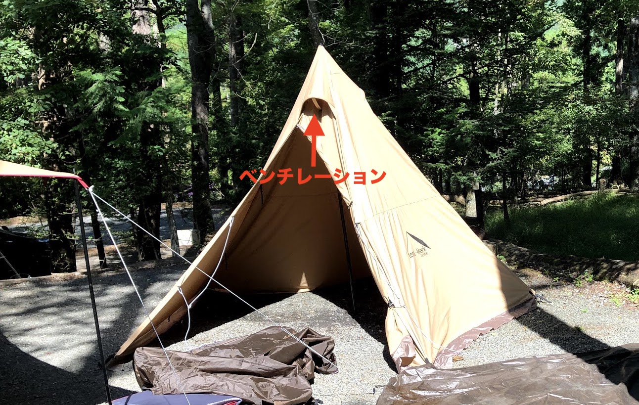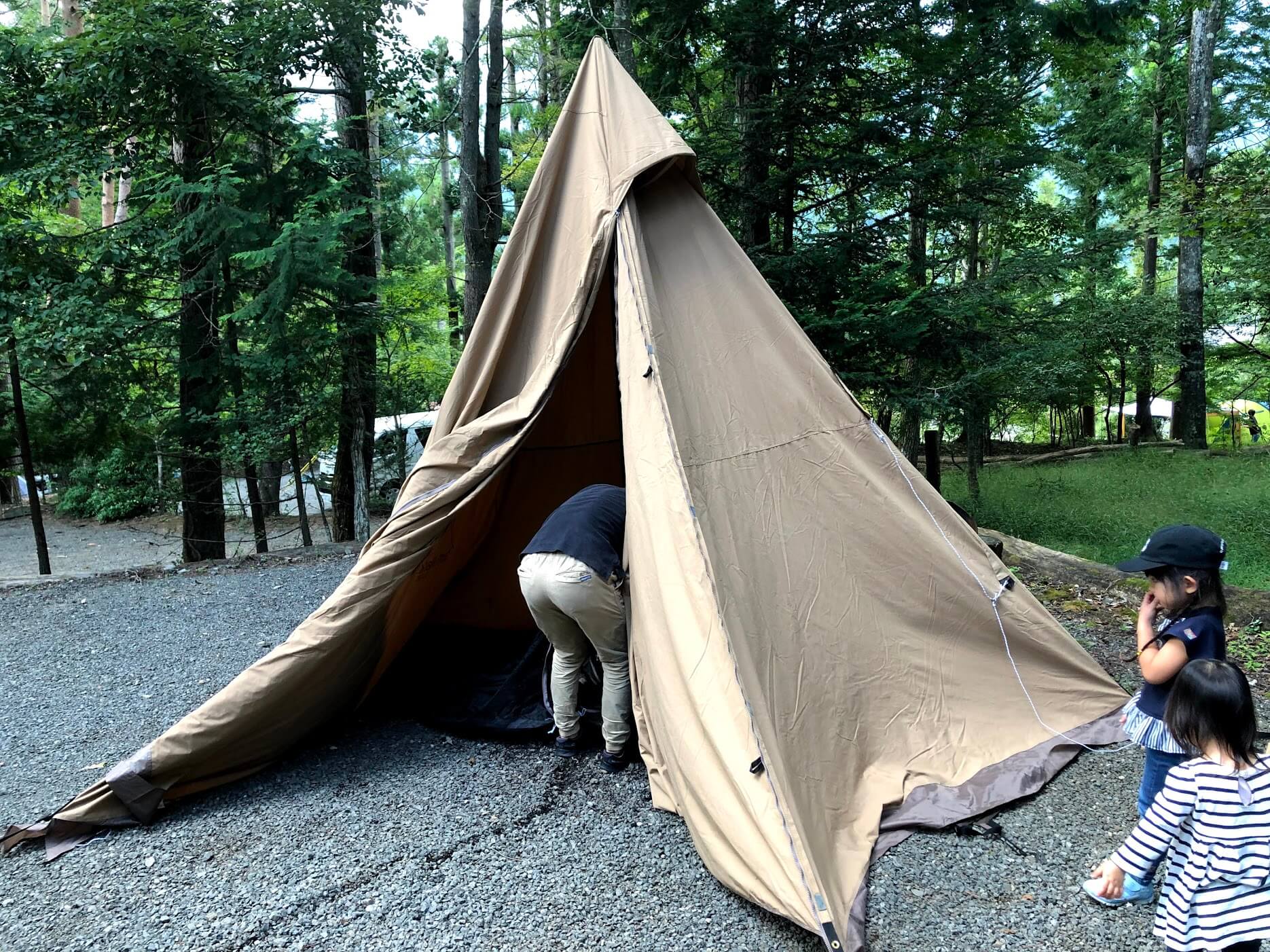 設営はティピー(ワンポール)型らしく、非常に簡単。