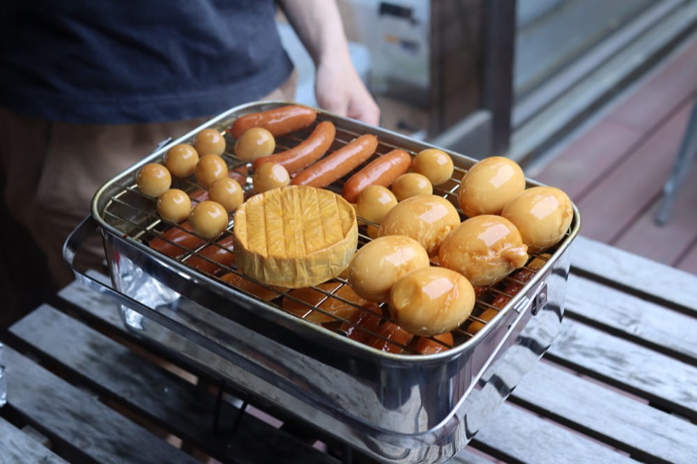 フタを開けてみて、食材がいい感じに茶色く色づいていれば燻製完了です。じゅるり…