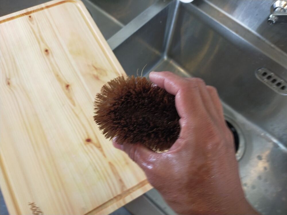 カッティングボードで食材を切った後には必ず水洗いをしましょう。洗いに使用する道具はたわしがおすすめです。たわしを使用することで、木の繊維の隙間に入ってしまった汚れをかきだすことができるからです。