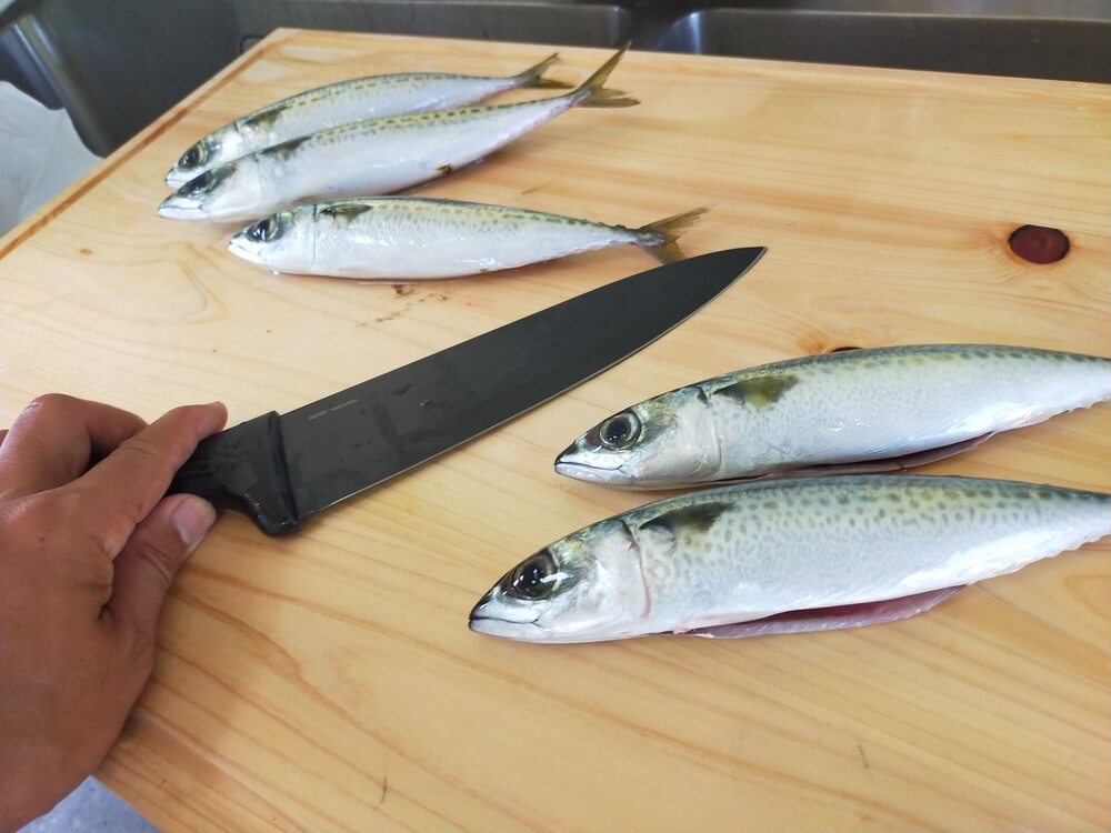 アジやイワシなどの小型の魚をさばく際も、カッティングボードの脇に数匹をのせて作業ができる余裕があります。