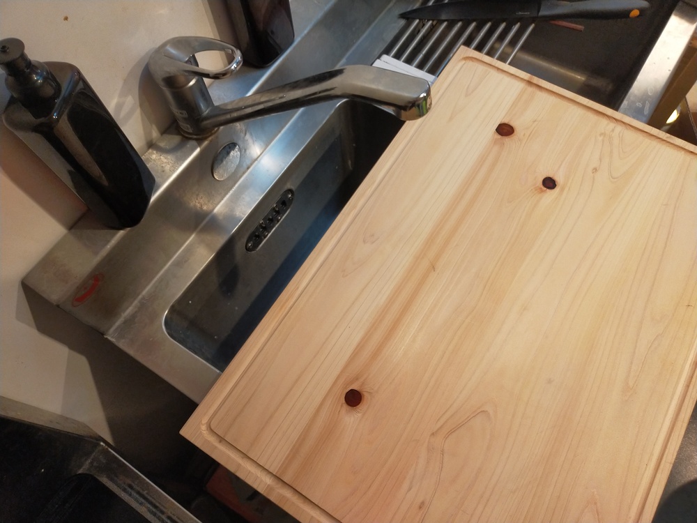 マグボードXLは小型のシンクの上ならば、橋渡しにできます。さばいた魚の内蔵などを水で洗い流すのに作業がしやすいです。