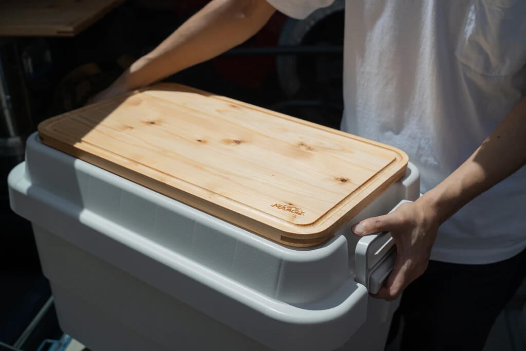 マグボードLは、キャンパー間で人気のあるトランクカーゴの50Lサイズや同規格の収納BOXの上にぴったりと納まります。