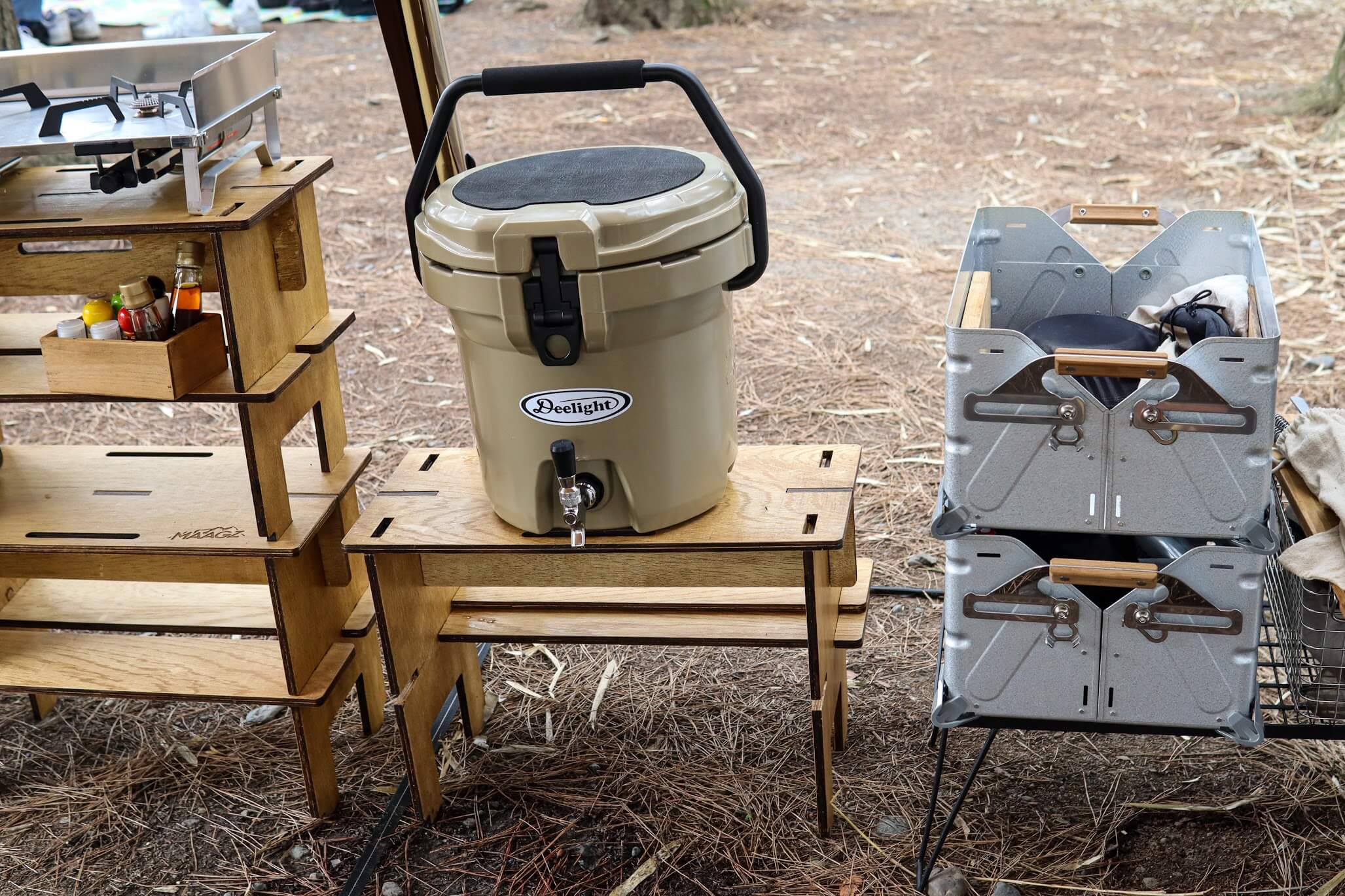 今回ご紹介する2.5 gallon(9.34L)の他、5 gallon(18.9L)がラインナップ。個人的にはファミリーキャンプで9.34Lを使用し、ちょうど良いサイズ感です。