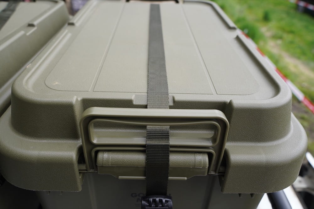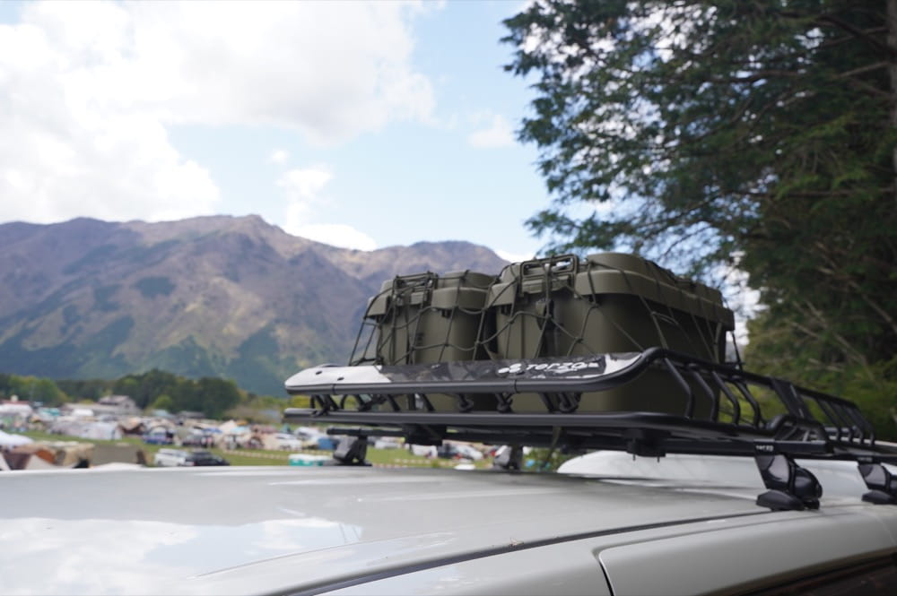 ルーフラックへの装着はラチェット式バックルが付属したベルトで固定。ラチェット式は時短にもなりますし締め付けトルクもかけれるのでルーフへの積載にぴったりマッチします。
