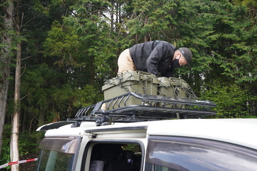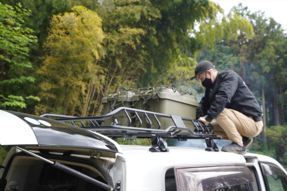 さらに保険としてネットで全体を覆うようにします。ルーフに何かを積載するということは落下のリスクを伴うことになります。責任のある作業ですのでしっかりと実施しましょう。
