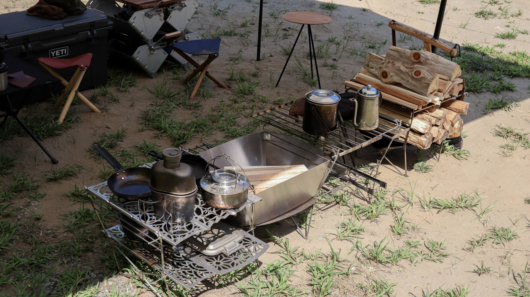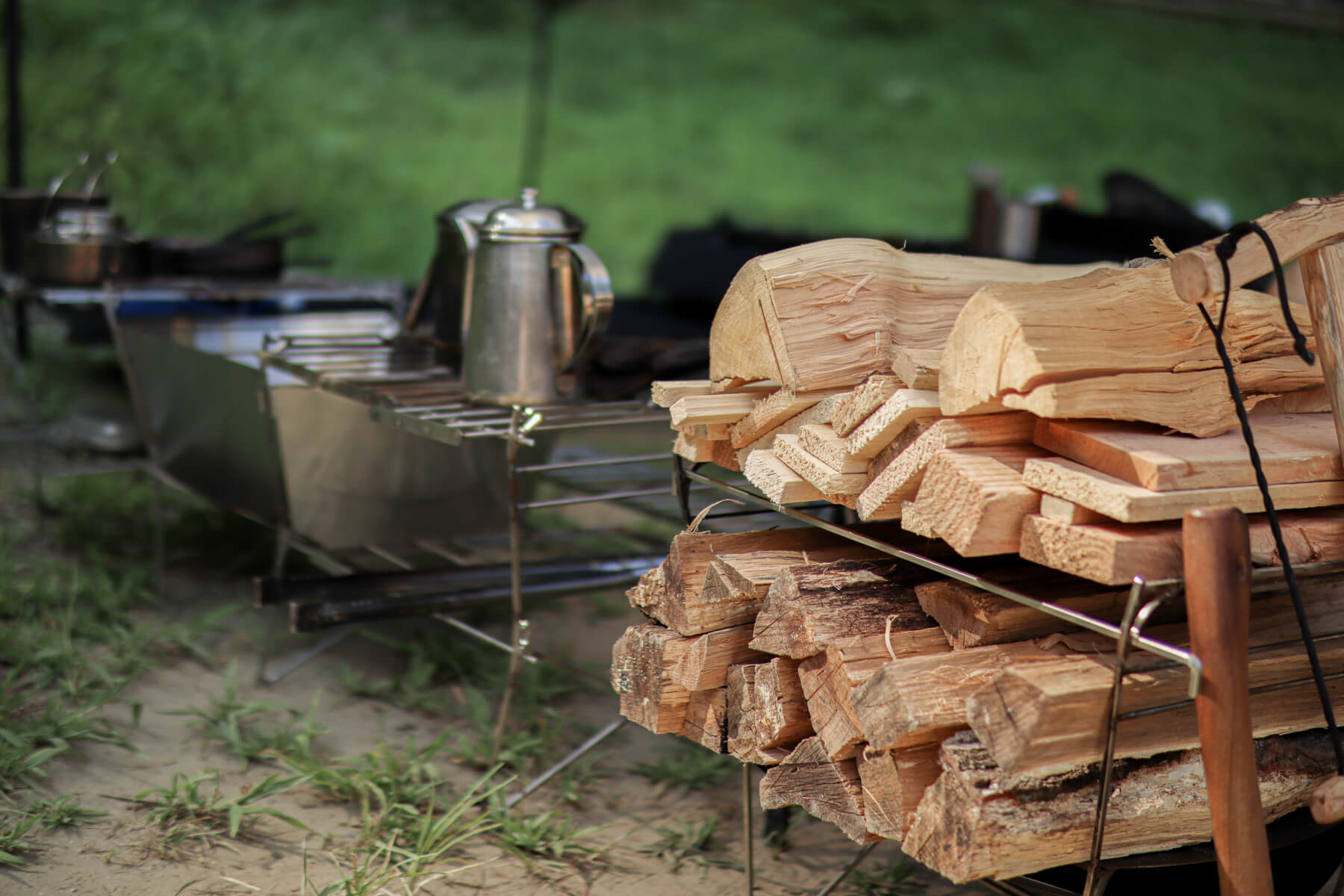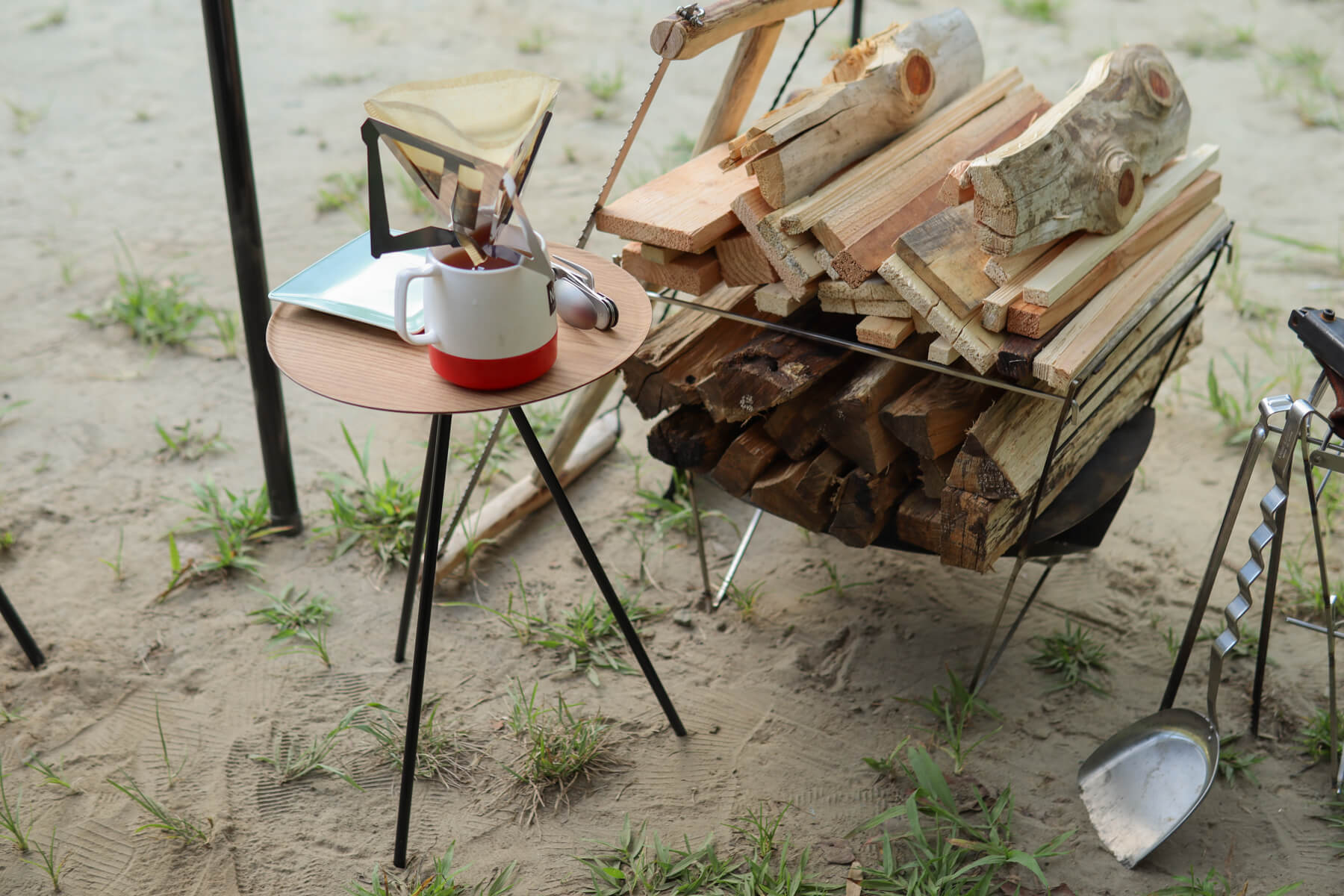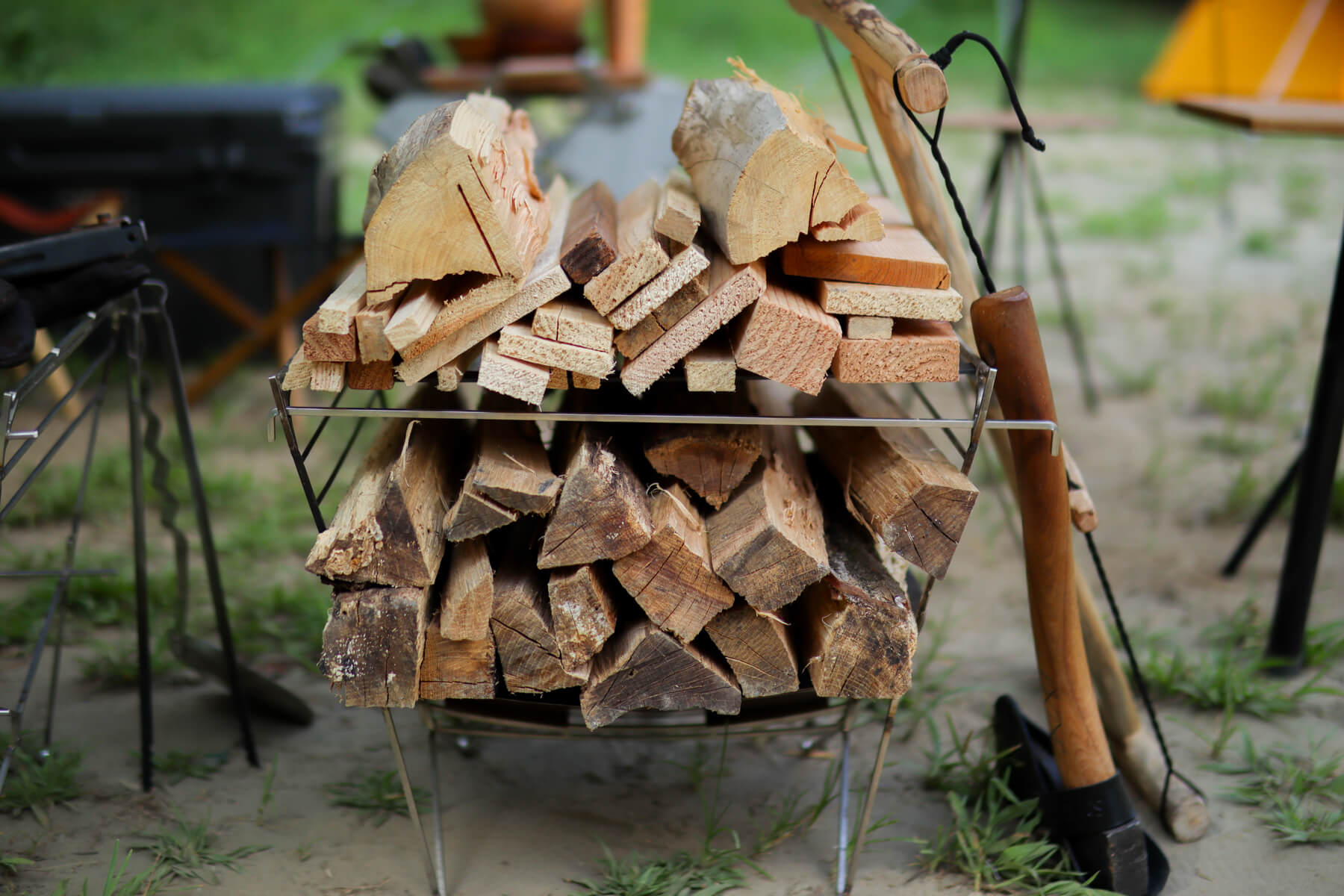 おまけのコンテンツです。弊社製焚き火台、RAPCAの使い方について。写真のように「薪置き」として使用しても良い感じです。