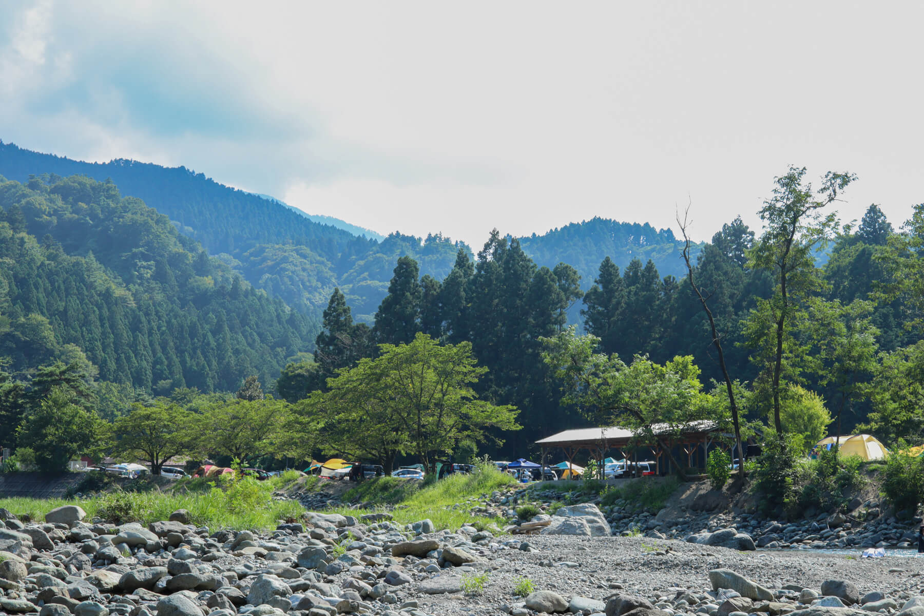 オートキャンプのキャンプサイトは道志川沿いではありますが、河川敷では無く一段上がった所にあります。