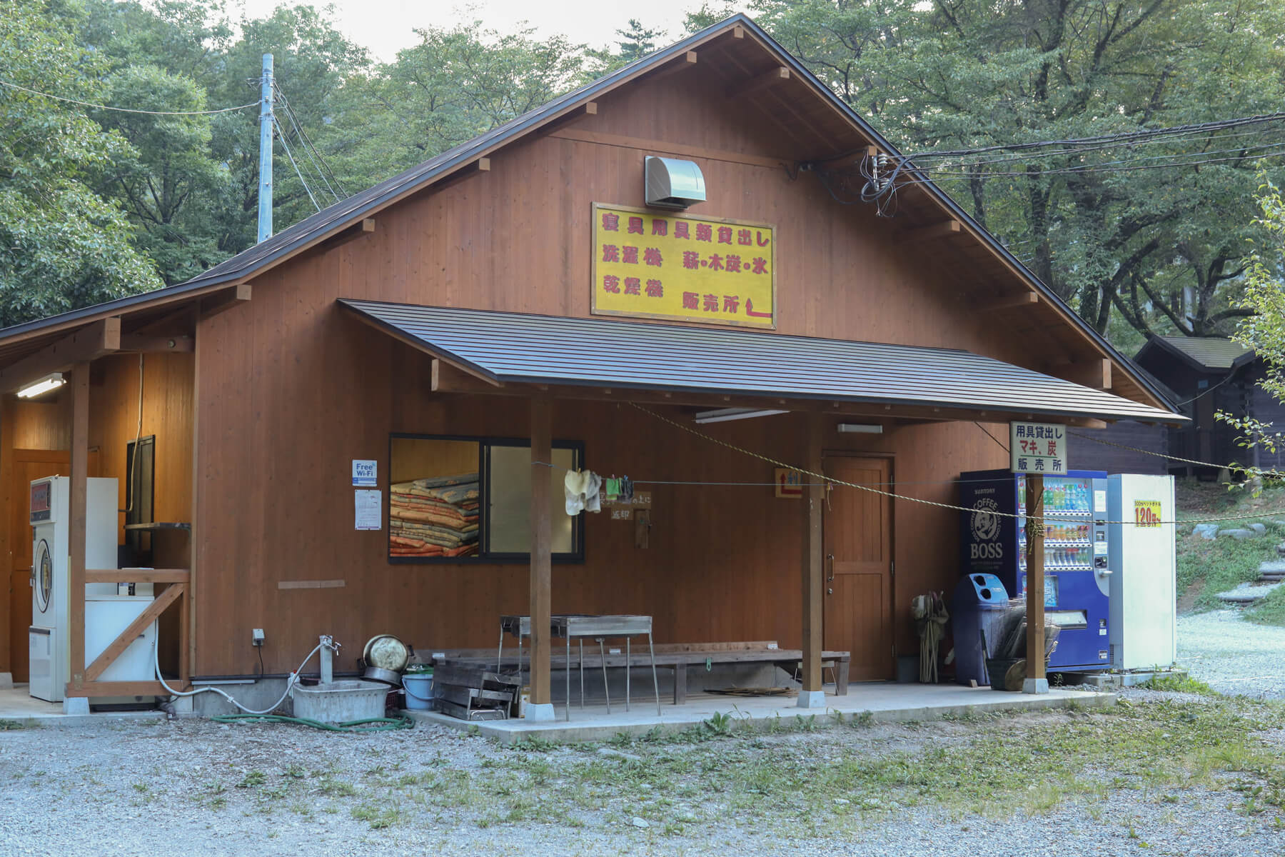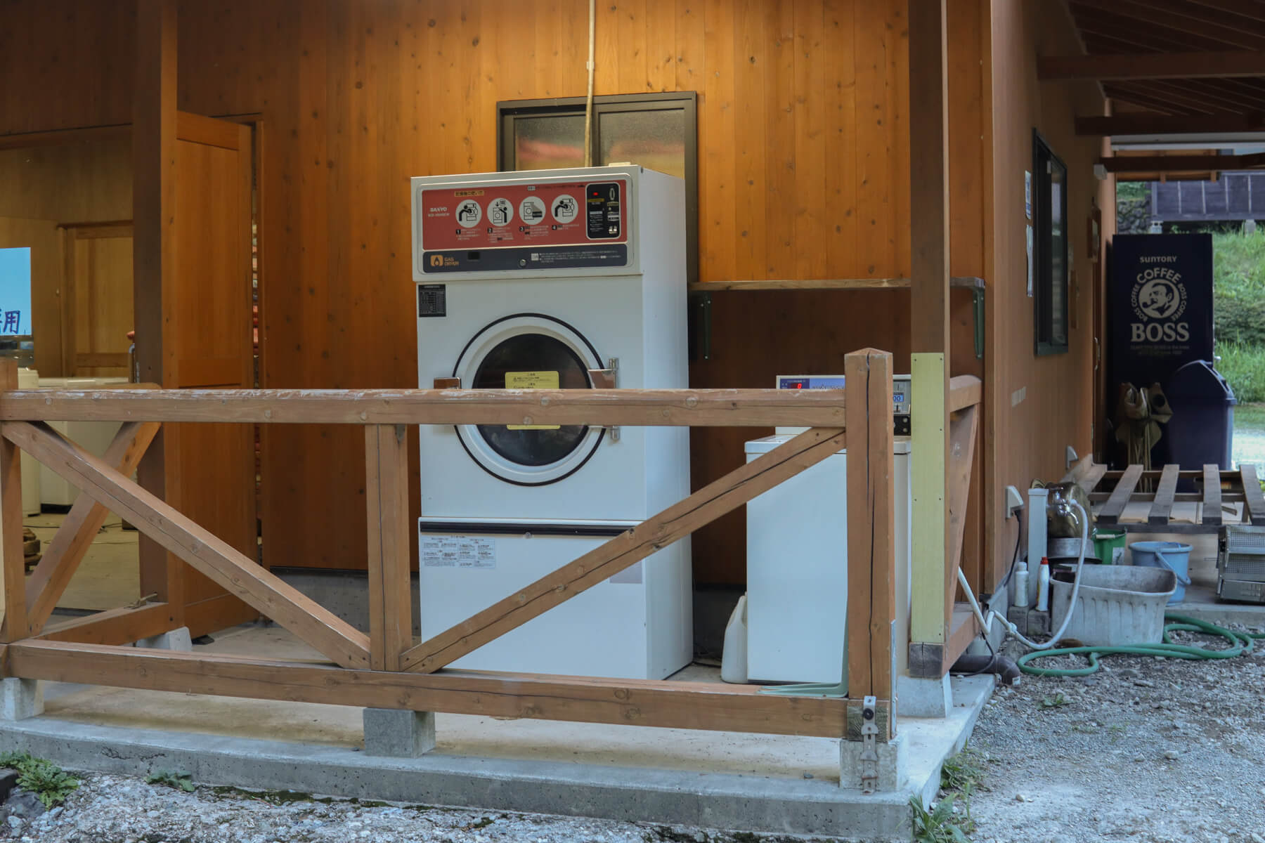 ロッジ・バンガロー泊時の寝具貸し出しの他、洗濯機、乾燥機が完備。薪、炭、氷の現地販売もあります。