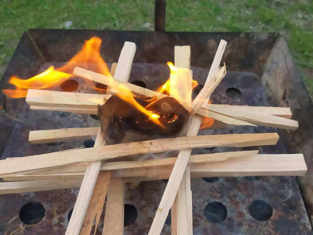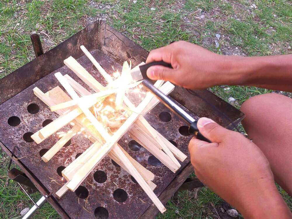 ファイヤースターターの火花を確実に着火させるためには、よく乾いた火口と、よく乾燥した針葉樹の薪を用意しましょう。