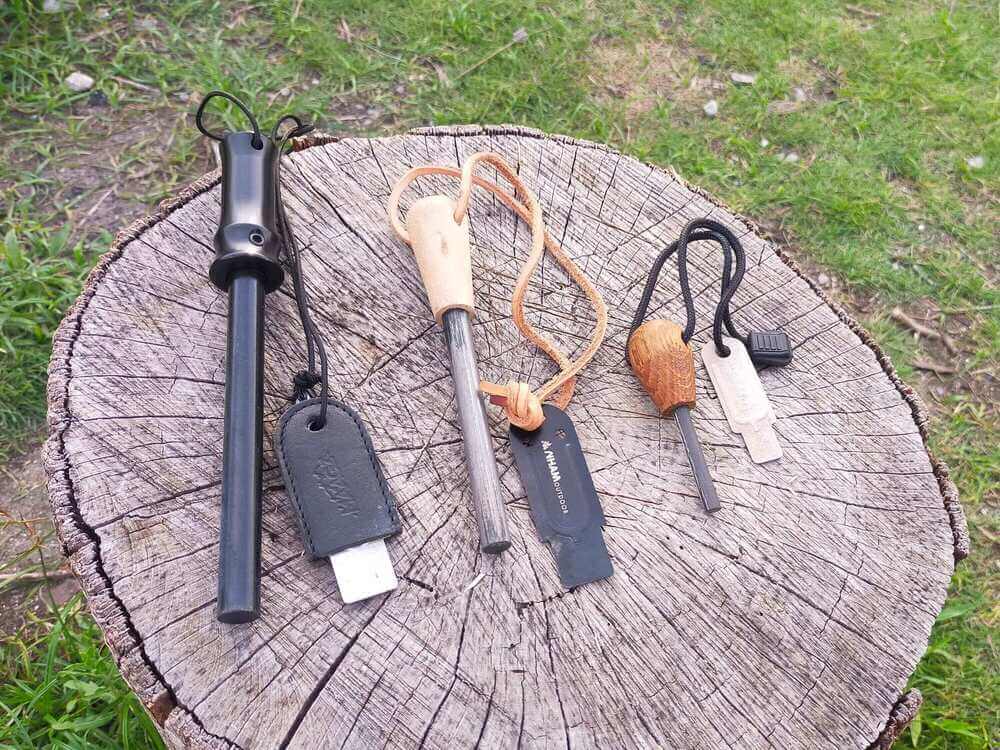 フェロセリウムやマグネシウムでできた金属の棒(ロッドやファイヤースチールと呼ばれる)とストライカーという金属のパーツが一組になって販売されている現代版の火打石です。