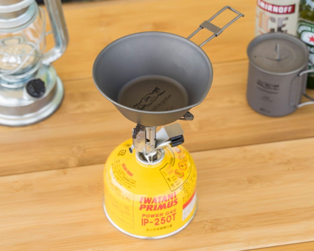 容量310mlとスタンダードなサイズで、折りたたみ式ハンドルでクッカーセットなどとスタッキング可能。60gという軽量さも武器です。