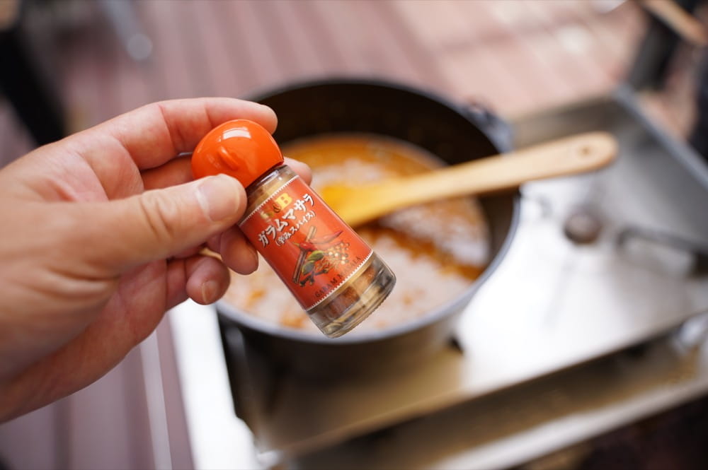 30分煮たらカレールー、チャツネ、フォンドボー、トマトペーストを入れて15分ぐらい煮込みます。
