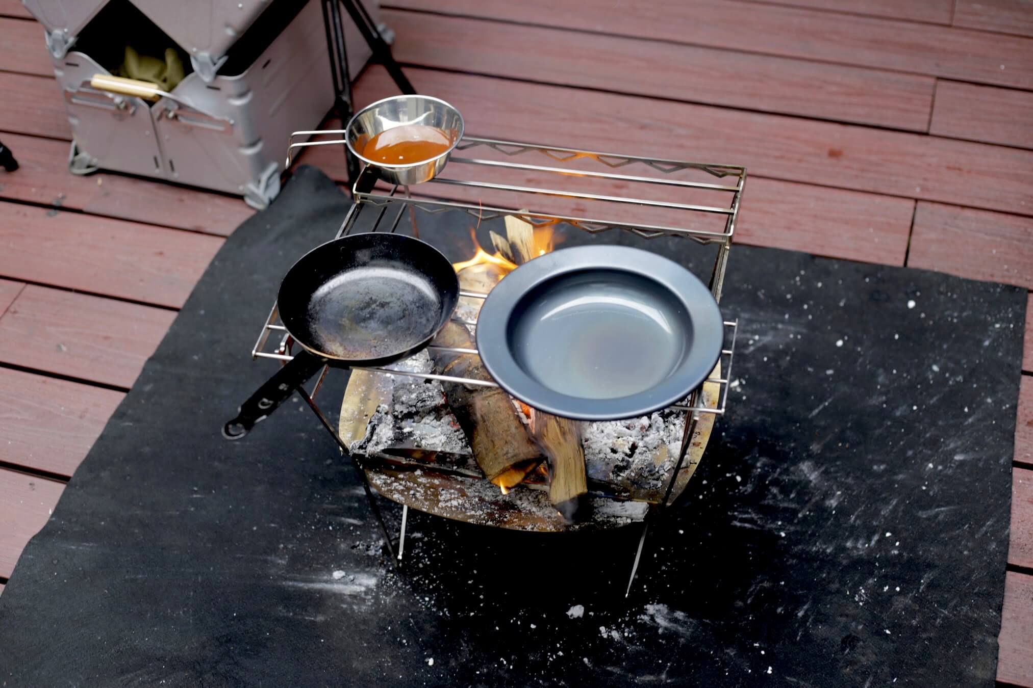 まずは余熱を入れて鉄を熱していきますね。ちなみに、焚き火台は弊社製RAPCAです!(せんでん)