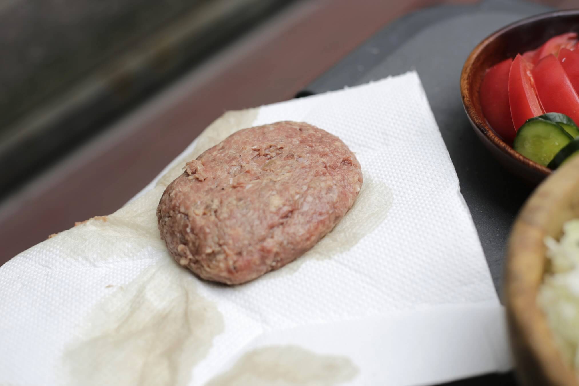 というわけで、ジュウでハンバーグを焼いていきます。ハンバーグは、八王子の肉の富士屋さんで購入。