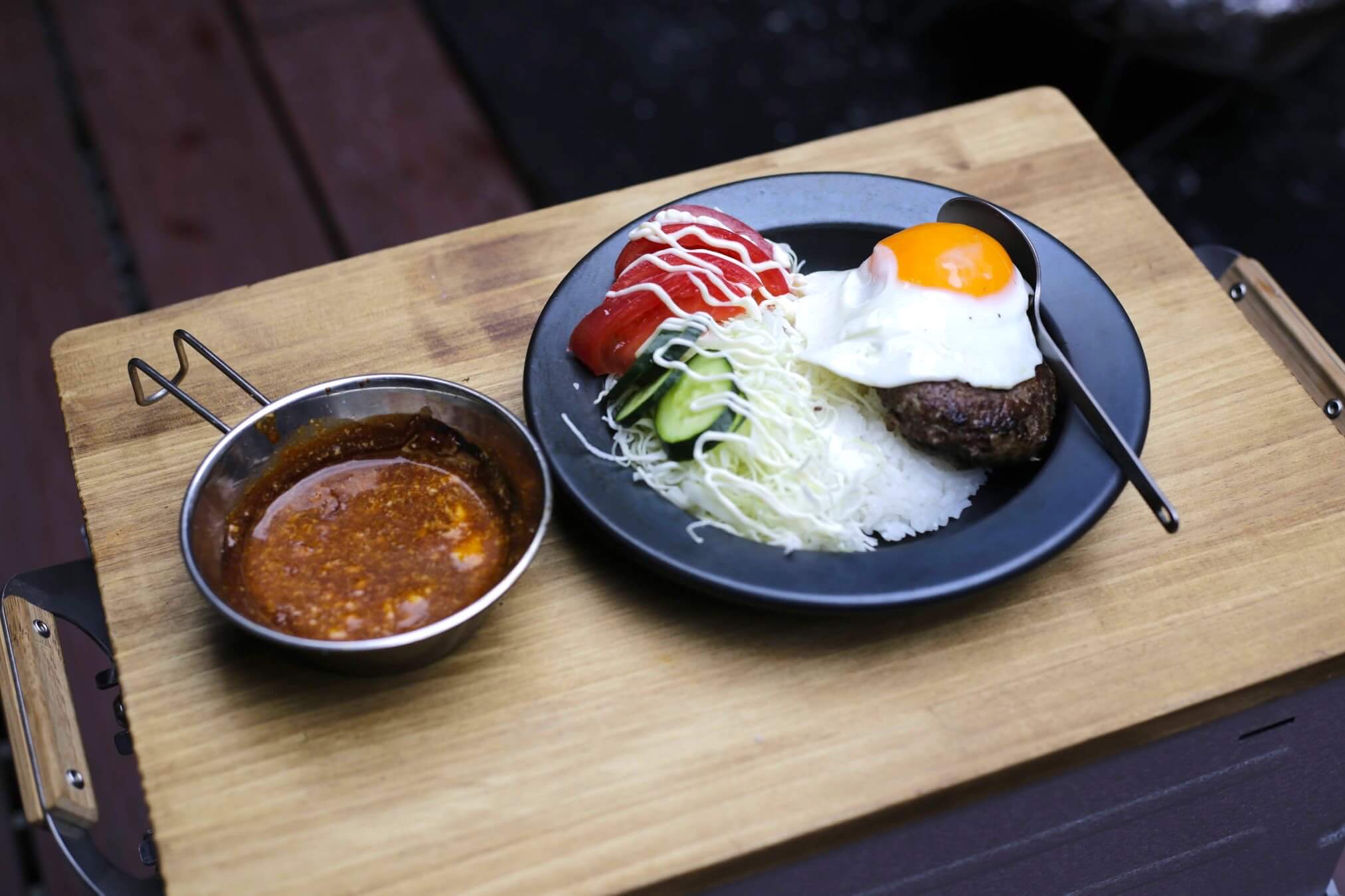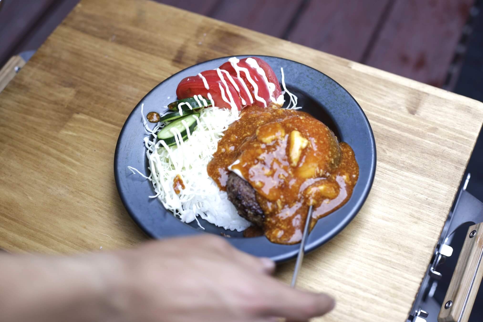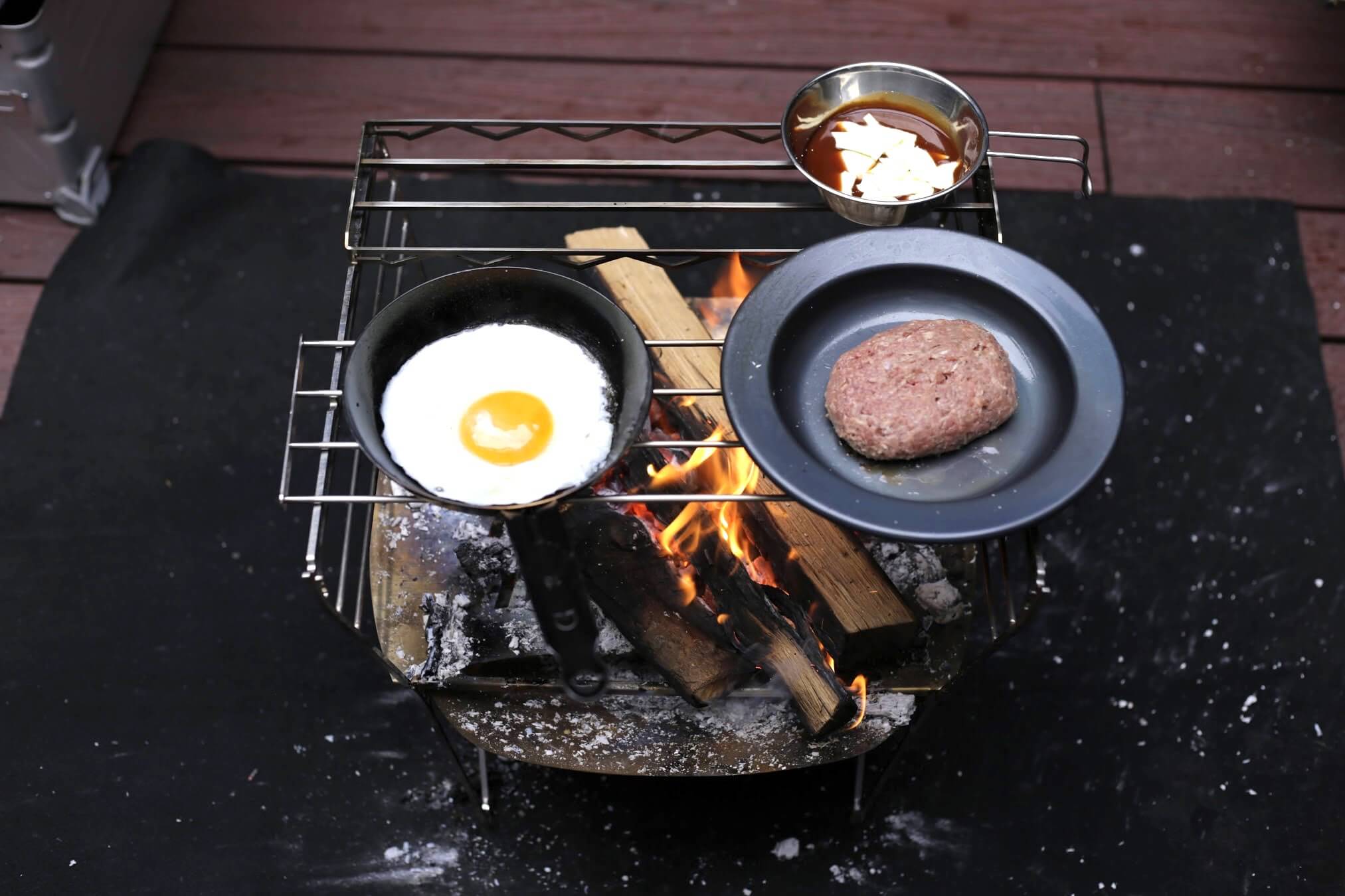 最高のハンバーグを、おしゃれな鉄フライパンで外で焼く。もう最高のシチュエーションですね。腹減ってきた。