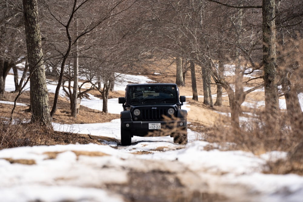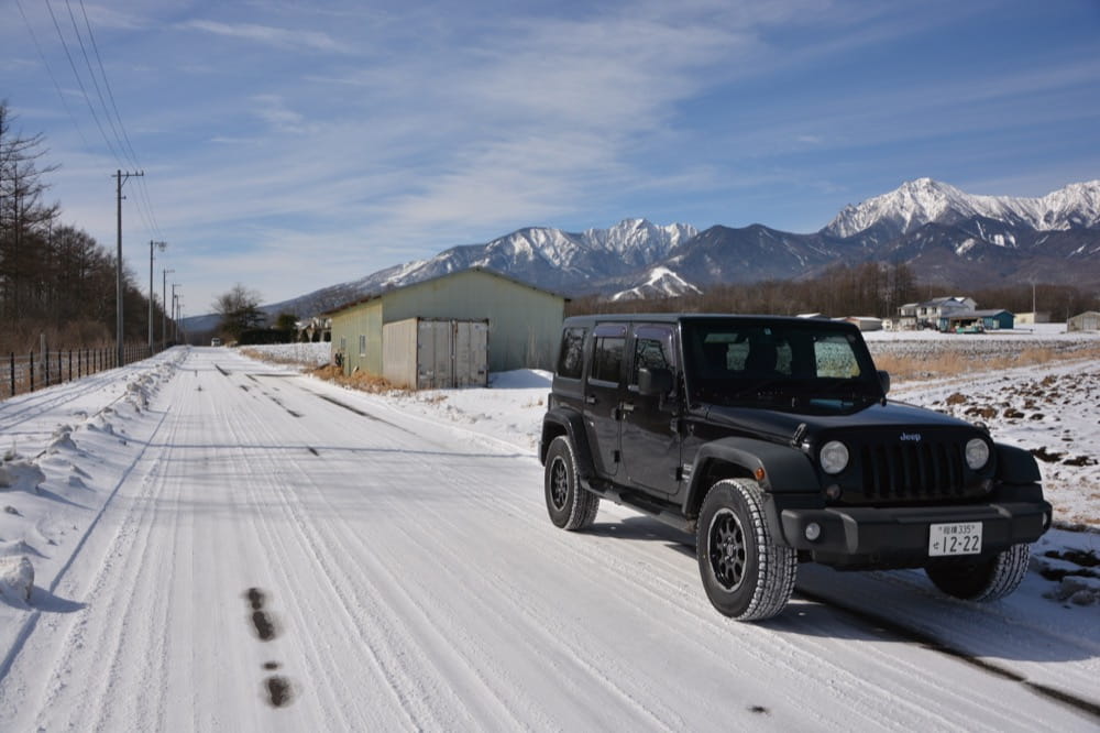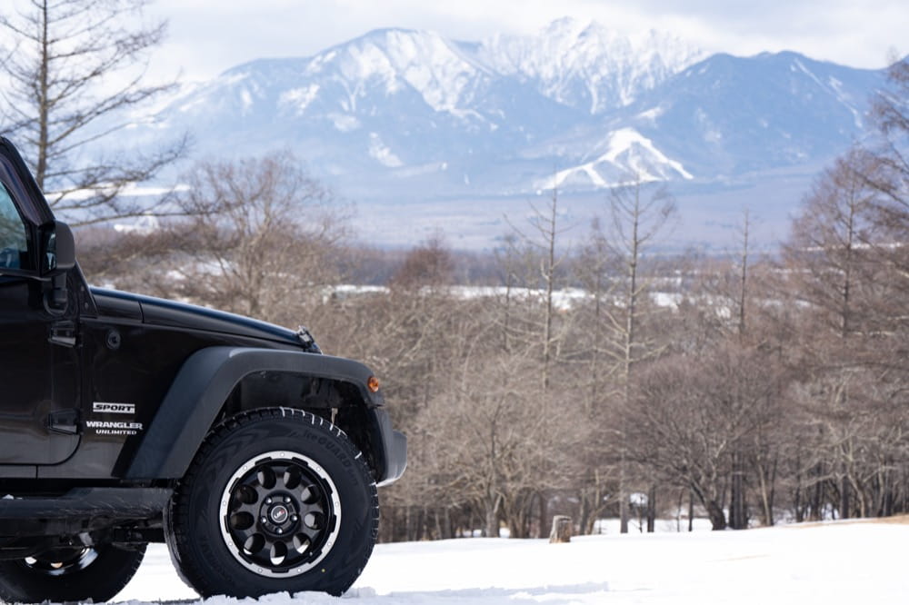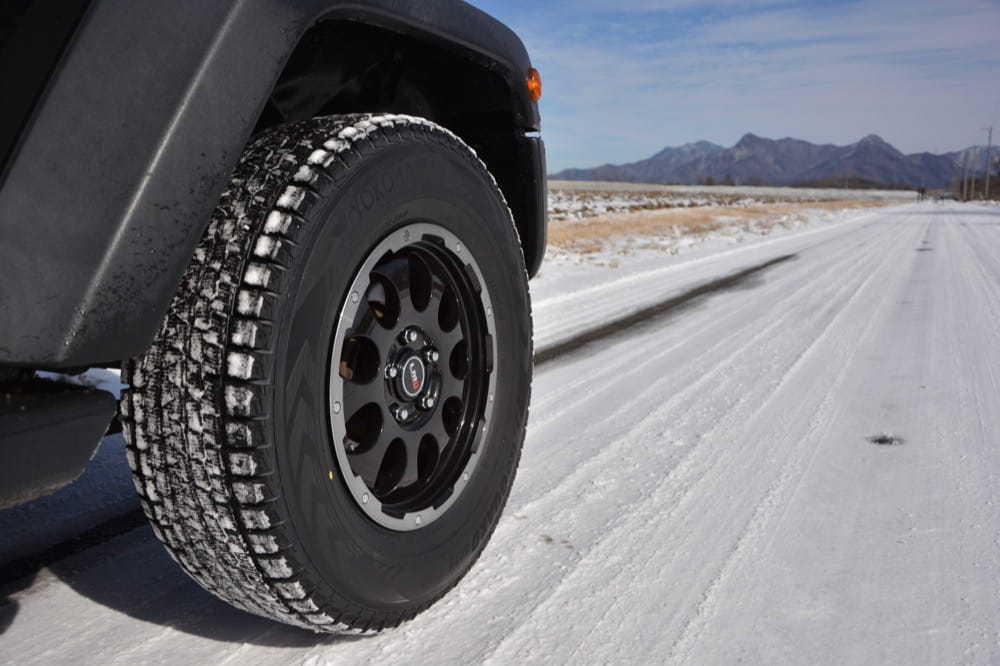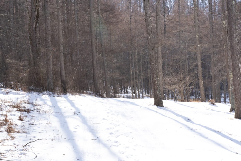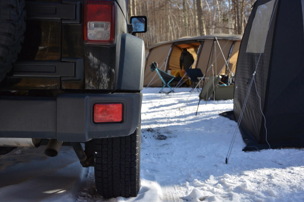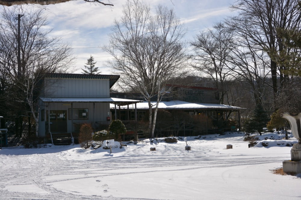 冬季のキャンプ場内は、積雪が多いためスタッドレスタイヤが必須です。