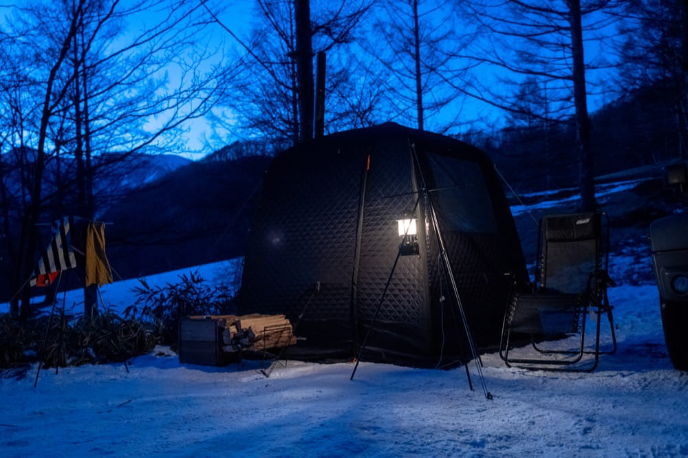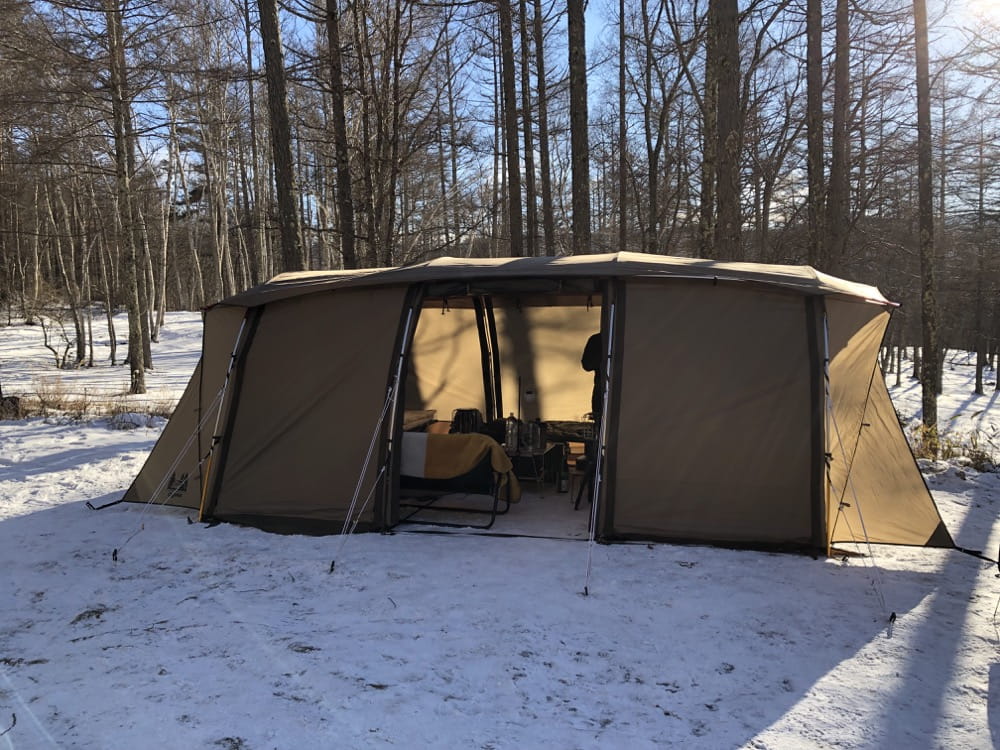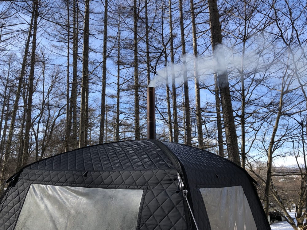キャンプ場のほとんどすべてのエリアに積雪があり、雪中テントサウナを楽しみました。