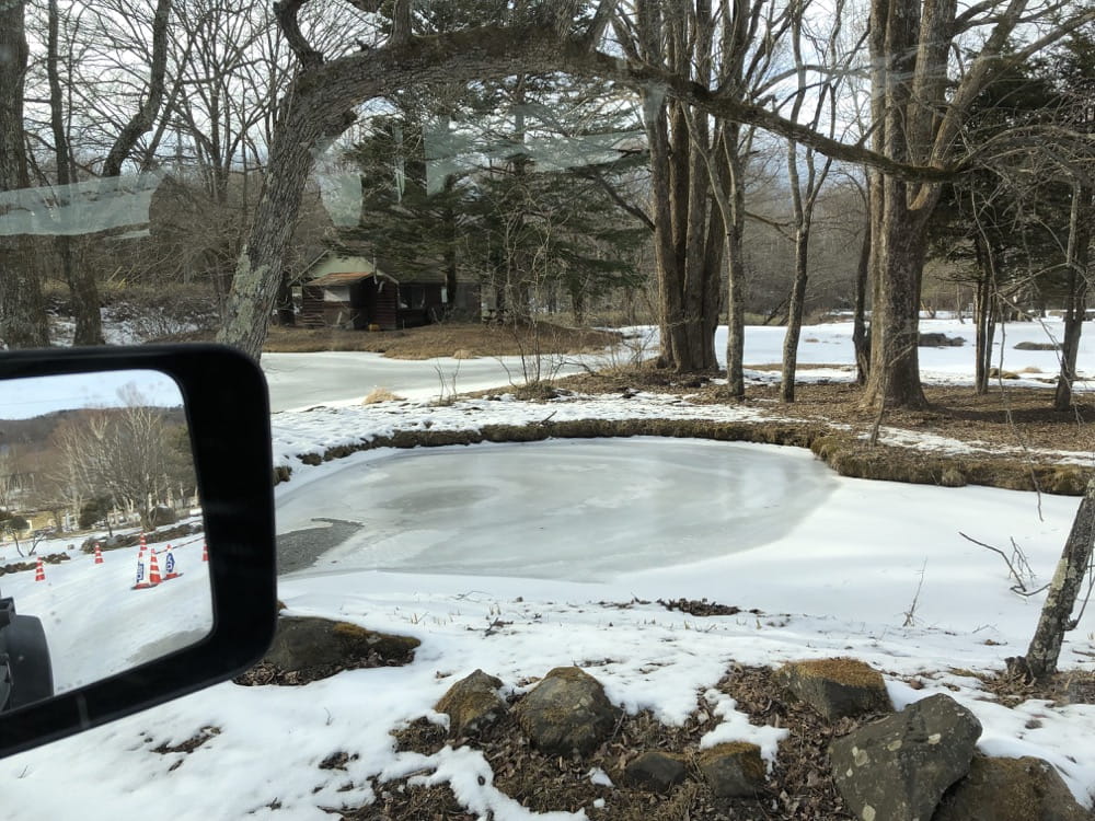 寒いだろうな。と事前に予測していましたが、やっぱり寒い!写真は場内にある池ですが、凍結しています。