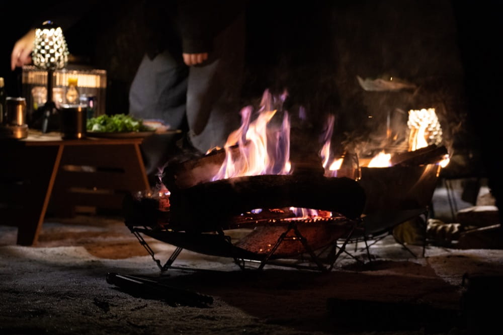 メンバーごとに思い思いのスタイルで焚き火を楽しみました。