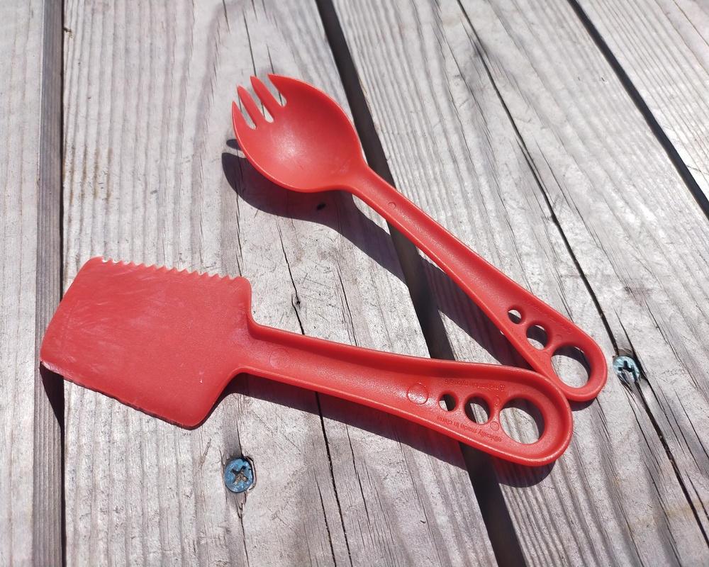 マイクロバイツはひとつで、フォーク、スプーン、ナイフ、スパチュラ、スプレッダーの5役の機能がある、多機能なギアです。