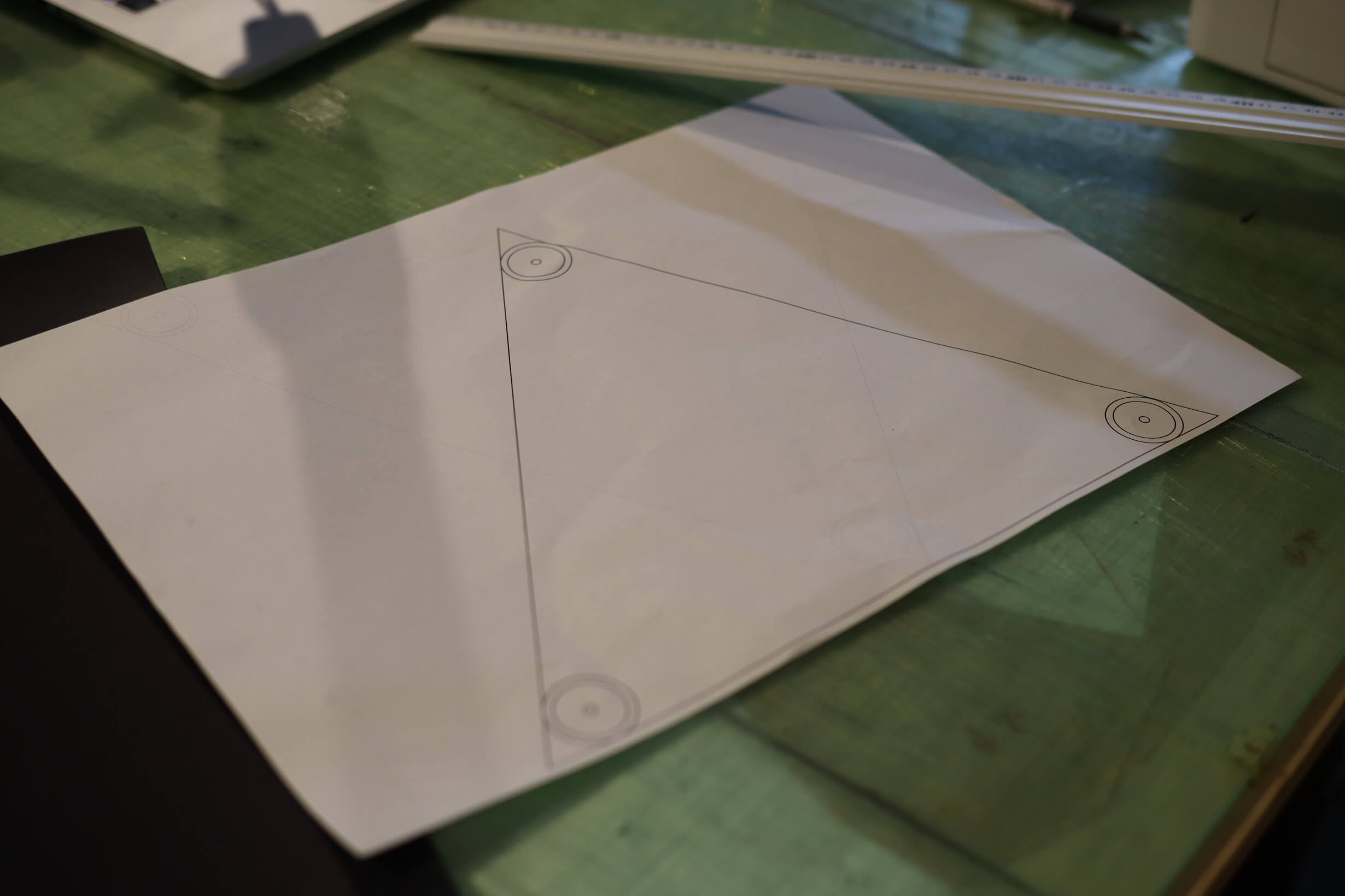 用紙はA3サイズ、余白は無し、倍率100%で印刷すると写真と同じサイズの三角形になります。