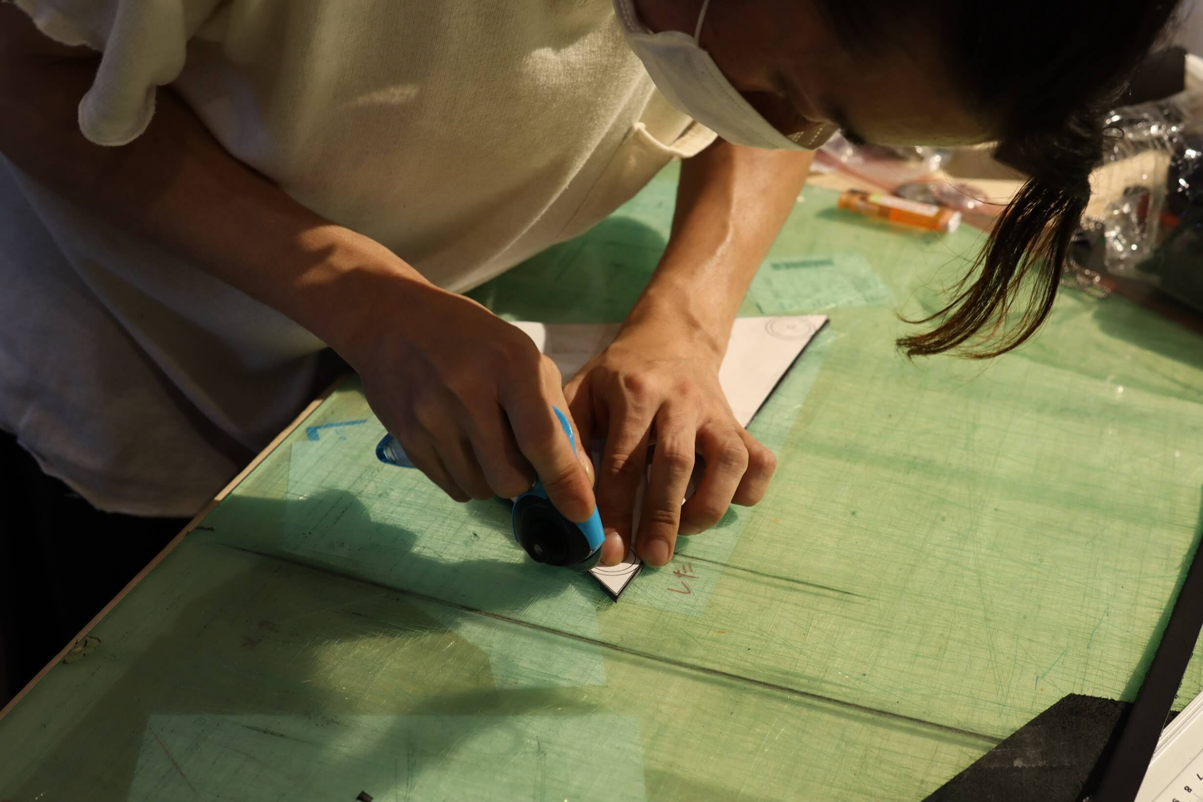 エッジ部分の円部分が難しいので慎重に。とは言えあとで粗めのヤスリで整えますので、綺麗なカーブに切れなくてもOK。