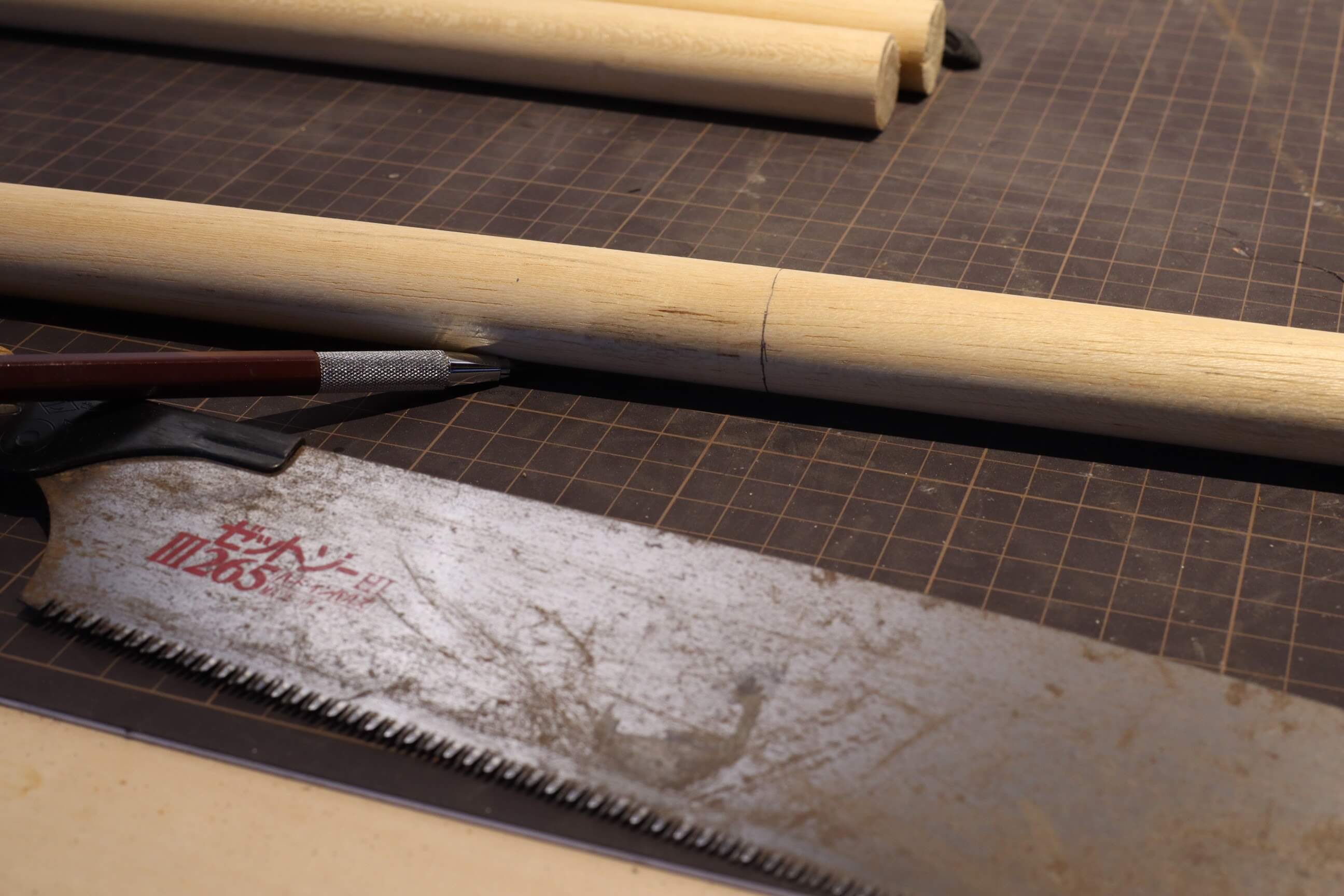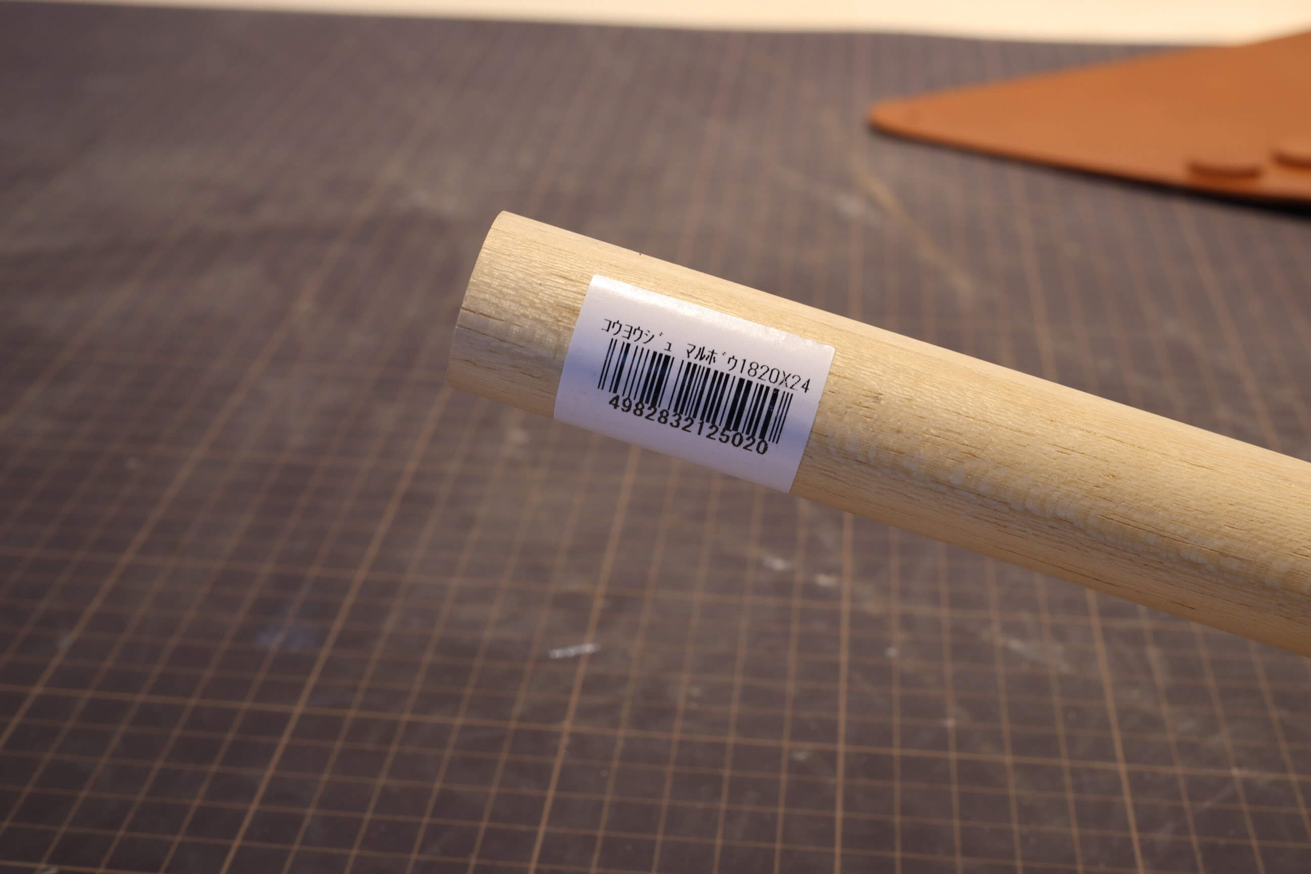 脚になる丸棒は、広葉樹をチョイス。24mm径です。CAINZで購入しました。長さは1800mmで1本796円です。